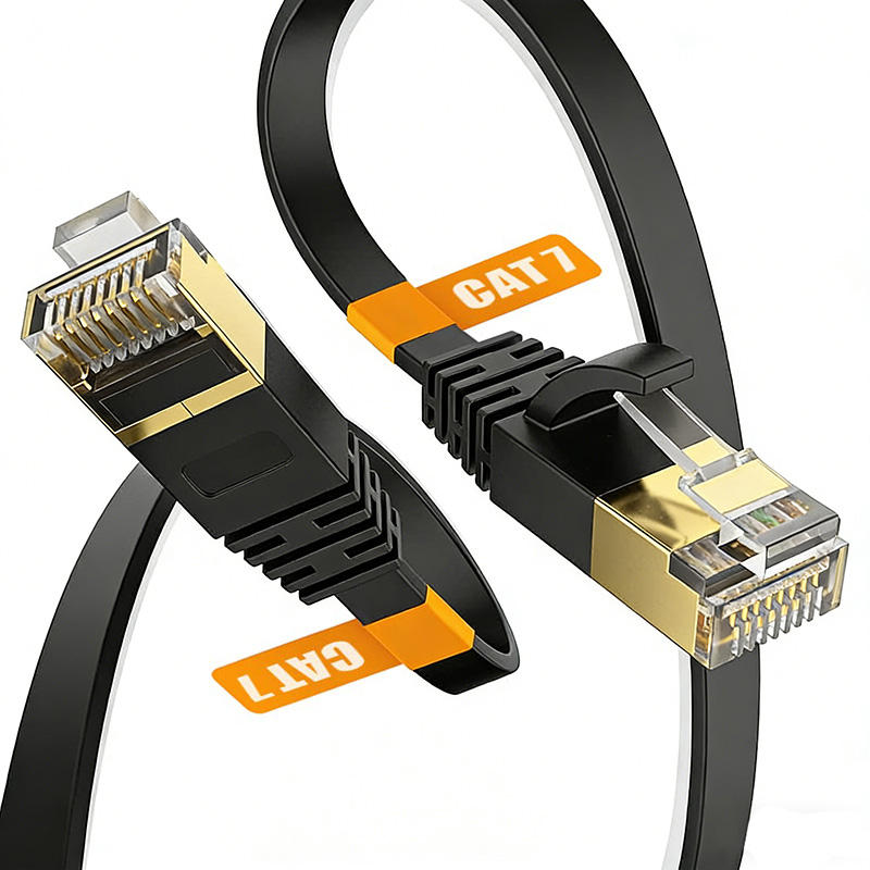 Cable Ethernet Plano de Cobre Trenzado CAT7 de la Marca D-Sunty, RJ45 600MHz SSTP, Cable de Conexión Blindado 30AWG, Compatible con RoHS 8P8C