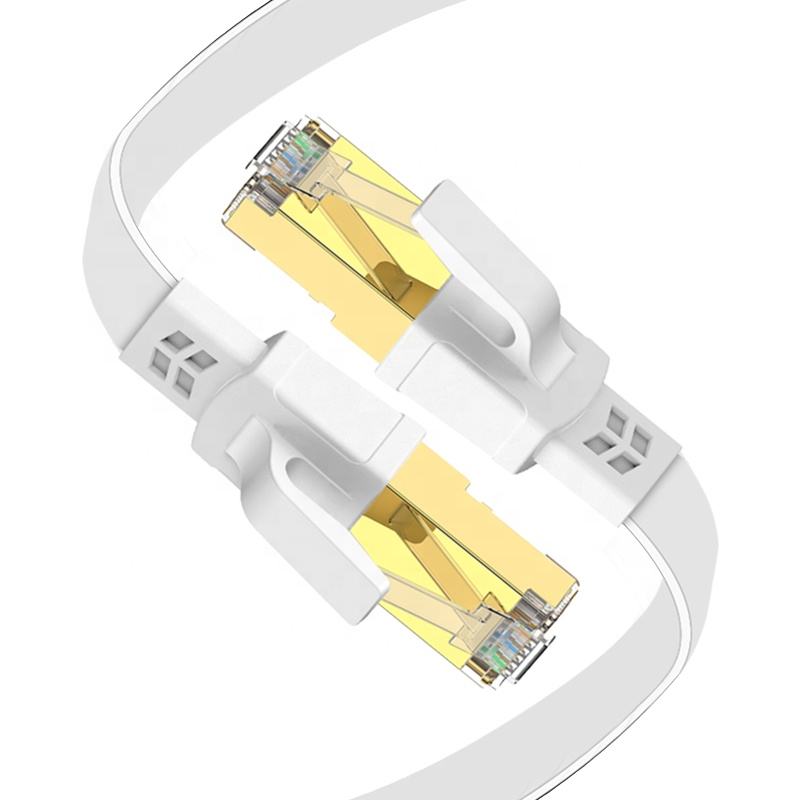 Cable de Conexión Plano D-Sunty CAT8 SFTP de Cobre Desnudo Sólido 28AWG RJ45 8P8C, Cable Ethernet con Blindaje de PVC 3U Dorado