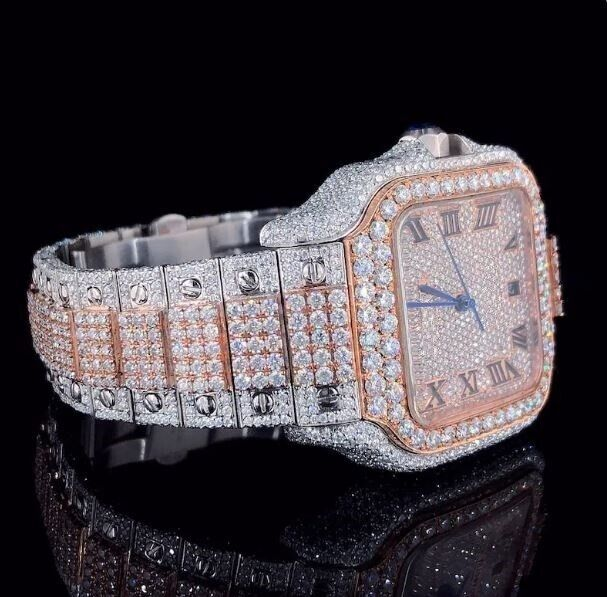 Reloj de Diamantes Moissanite Cuadrado Deportivo de Acero Inoxidable con Incrustaciones Completas, Hecho a Mano, Automático, de Alta Calidad, Estilo Hip Hop, Indio