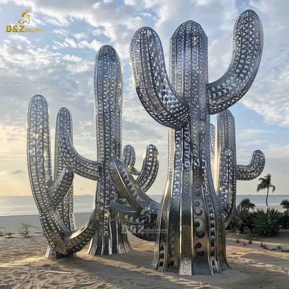 D & Z Proyecto de diseño de playa al aire libre personalizado Gran espejo de metal Escultura de cactus gigante