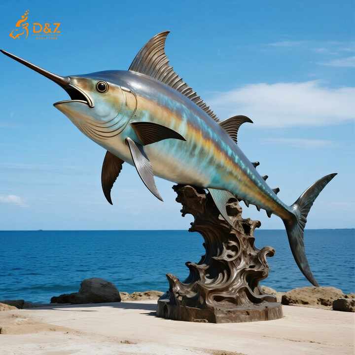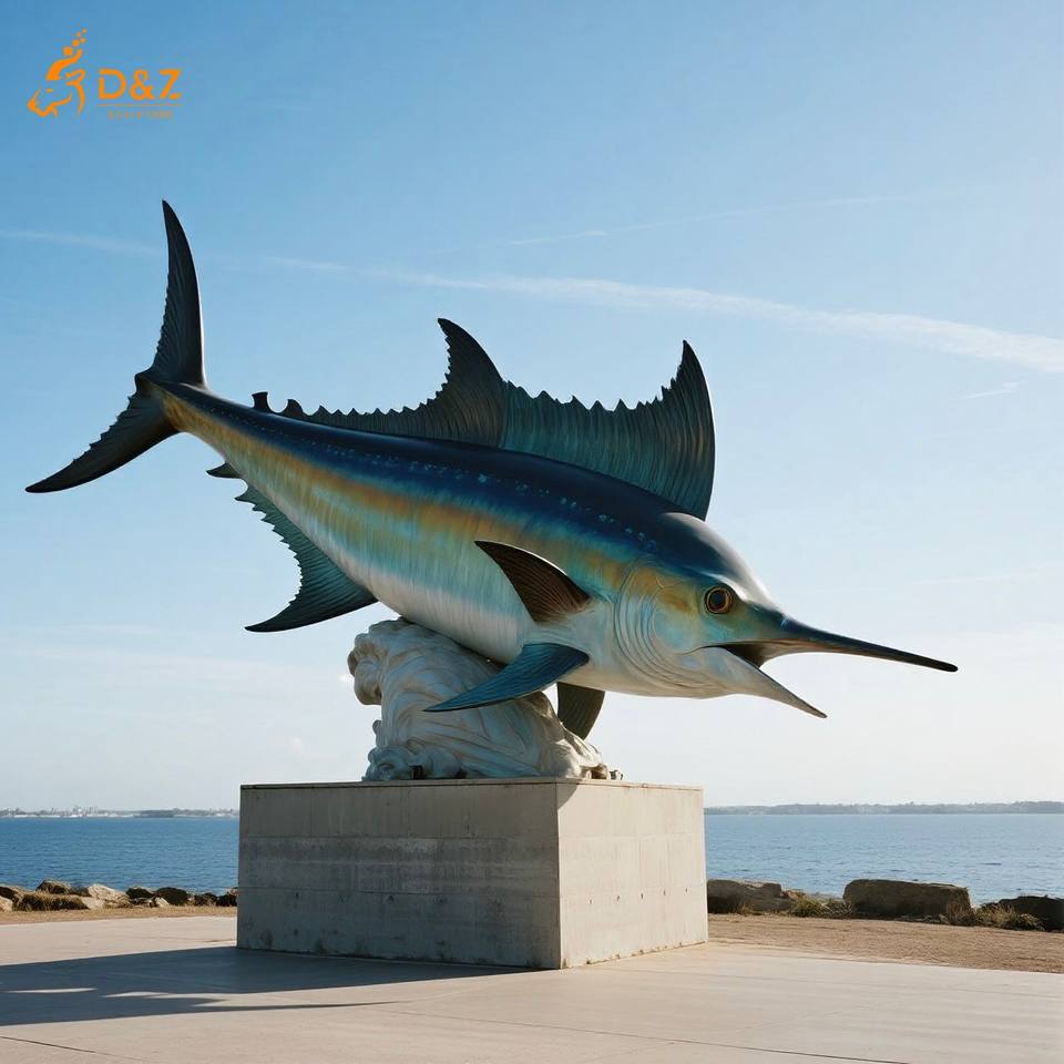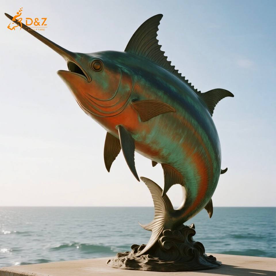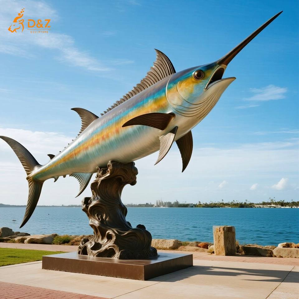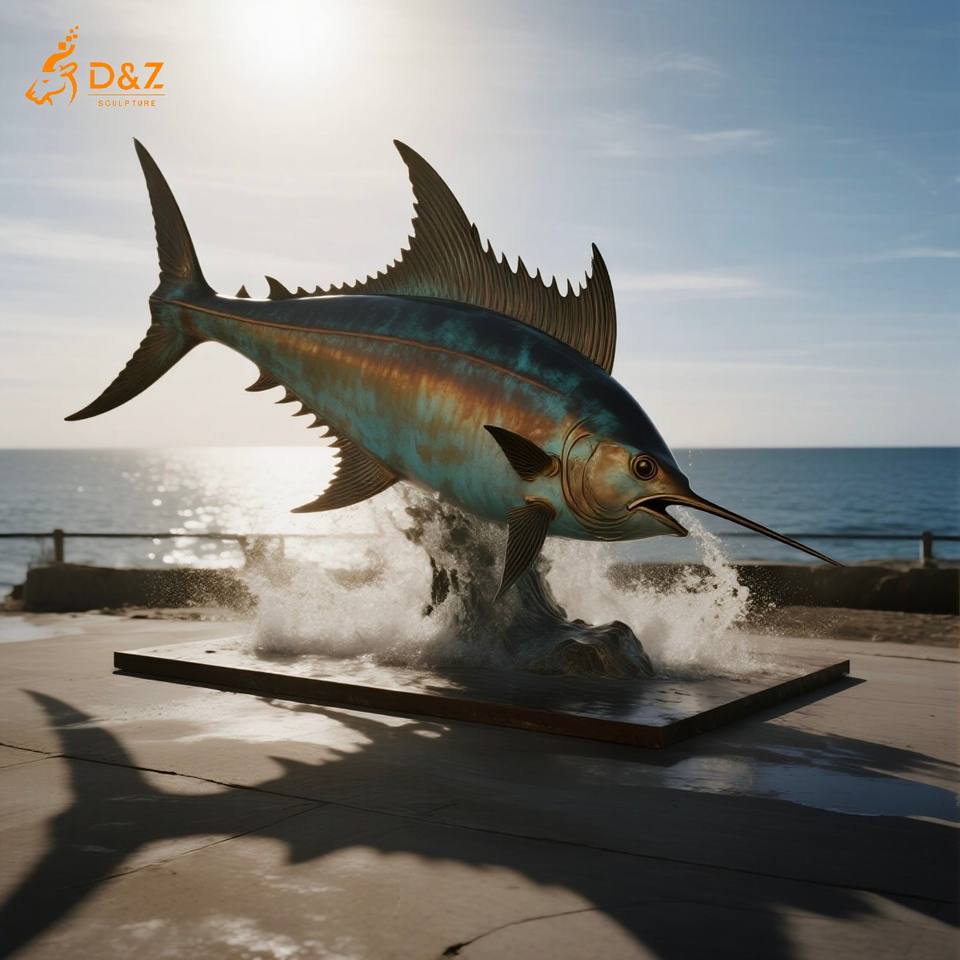 Diseño D & Z y decoración de bronce fundido a medida, escultura especial de pez espada grande para proyecto costero