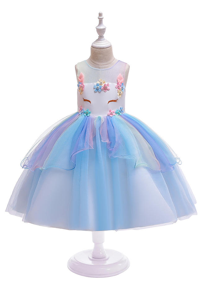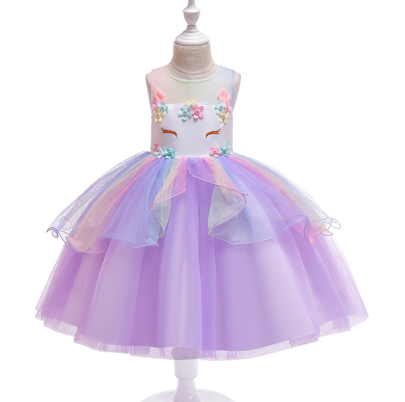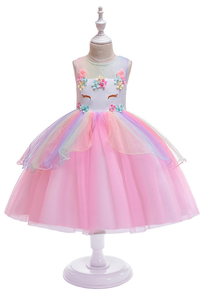 D0085, diseños normales de vestidos de Frock, ropa colorida y hermosa para niños, vestidos de fiesta de cumpleaños de unicornio para niñas