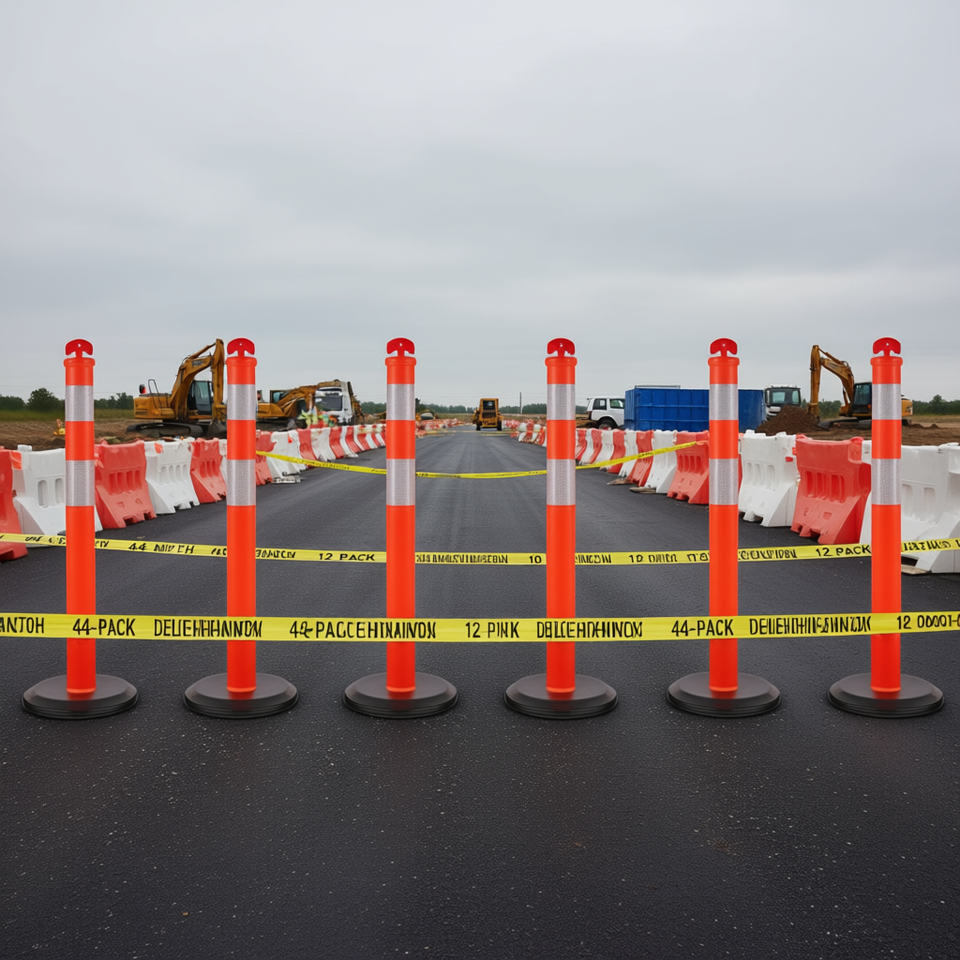 Postes Delimitadores de Tráfico D0100HAMELG de 44 Pulgadas con Base de Goma Reflectante, Paquete de 12, para Seguridad en Obras de Carreteras