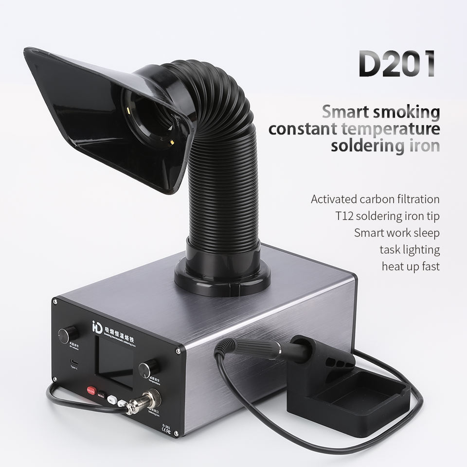 Soldador Eléctrico Multifuncional D201 con Temperatura Constante para Trabajos de Mantenimiento, Soldadura de Estaño, Ventilador de Extracción de Humos, Herramienta de Reparación