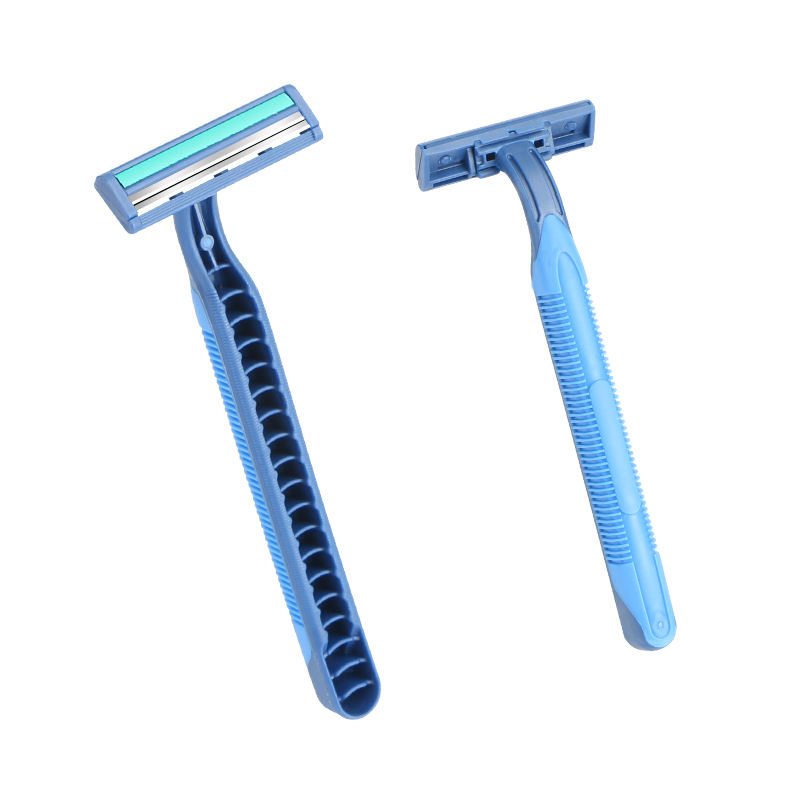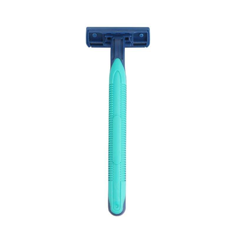 Nombre del producto:Máquina de afeitar desechable con mango de goma y dos hojas de acero inoxidable importado