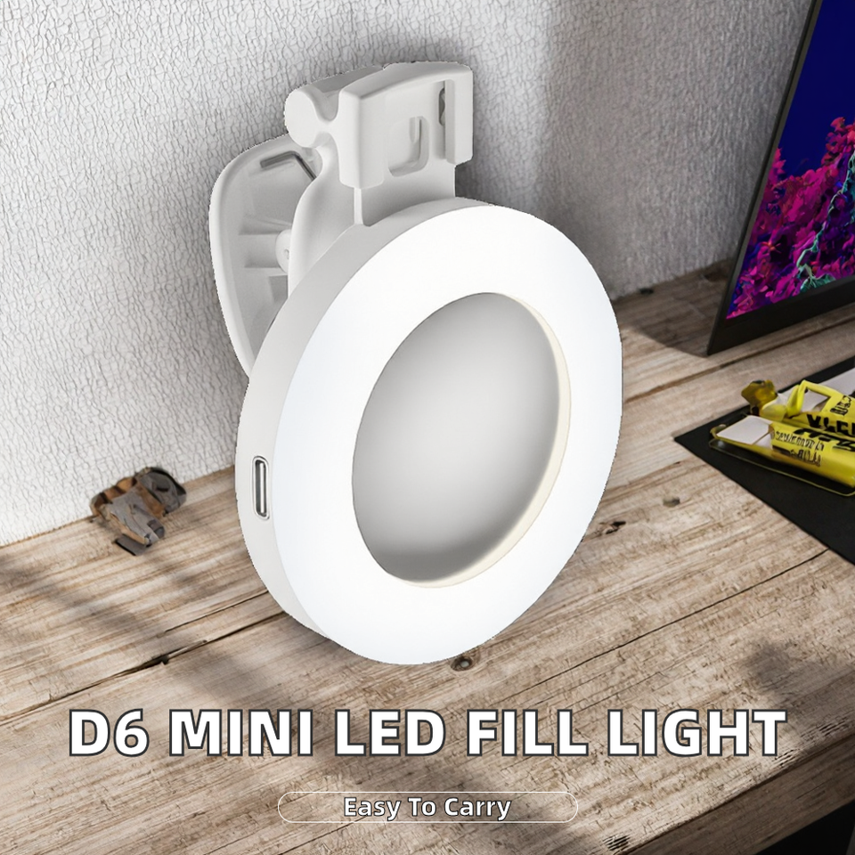Luz de Relleno LED Circular Portátil Mini Moonlight con Espejo para Fotografía Móvil D6, Transmisión en Vivo y Belleza, con Clip