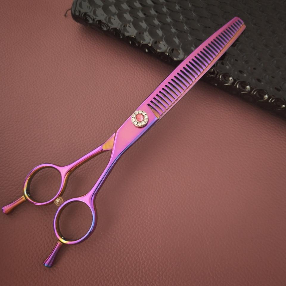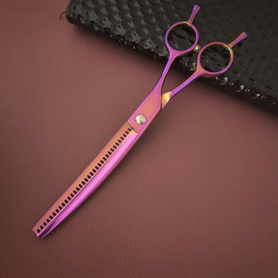 Tijeras de Pelo Curvas de Acero Inoxidable Rojo de 7 Pulgadas D9, Tijeras de Peluquería para Mascotas de Grado Industrial