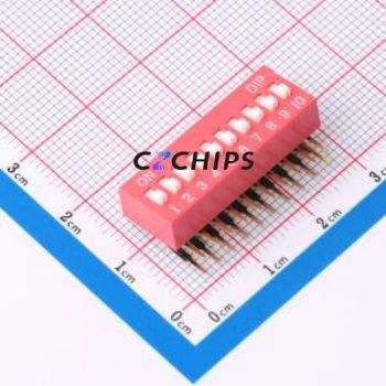 DA-10-R DIP Switch Through hole Component (THT) Switch ( Number of Switch Sections: 10 )( Lead Spacing: 2.54mm )( Color: Red )