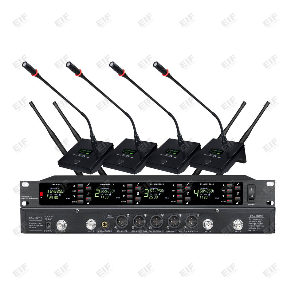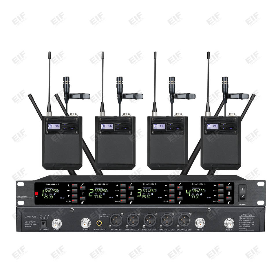 Sistema de Micrófono Inalámbrico UHF de 4 Canales DA-8024 con Batería AA y Conector XLR - Uso de Mano/Lavalier/Auricular/Sobremesa