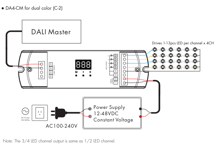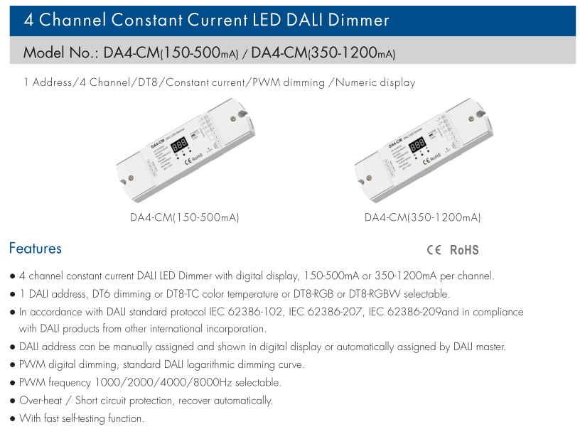 Nombre del producto:4 canal de voltaje constante DALI dimmer para luz LED