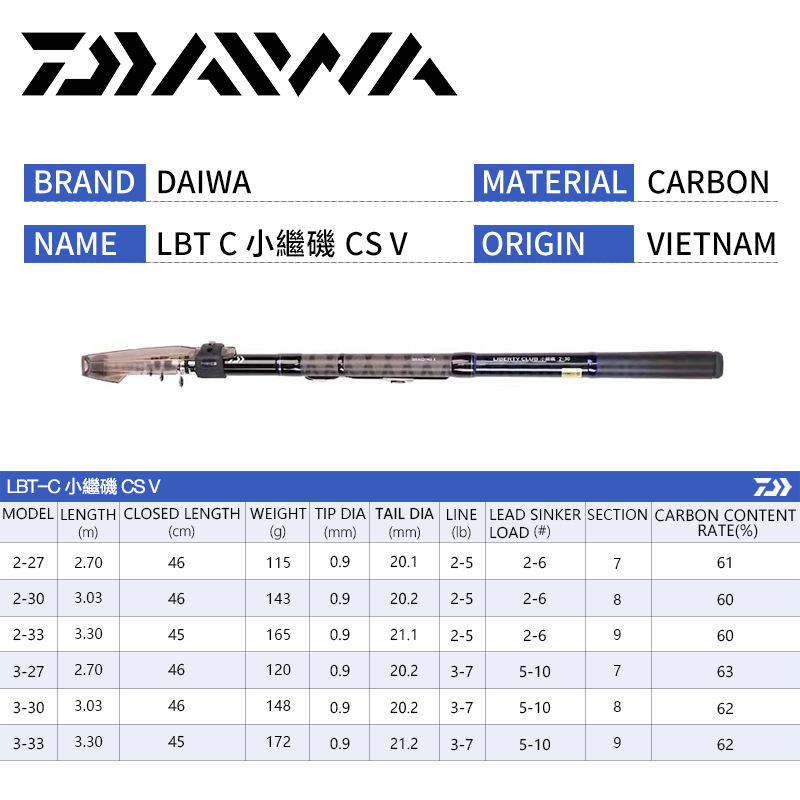 DAIWA LIBERTY CLUB LBT CS V Surf Rock Cañas telescópicas Caña de pescar en el mar 2,7 m/3,0 M/3,3 M Caña de pescar de viaje portátil guía Fuji