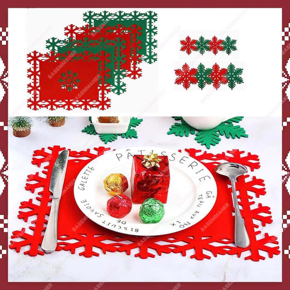 DAMAI 12PCS Snowflake Placemats Christmas Table Red Green Felt Place Mats Coaster for Party Holiday Home Dinner Tableware Decor