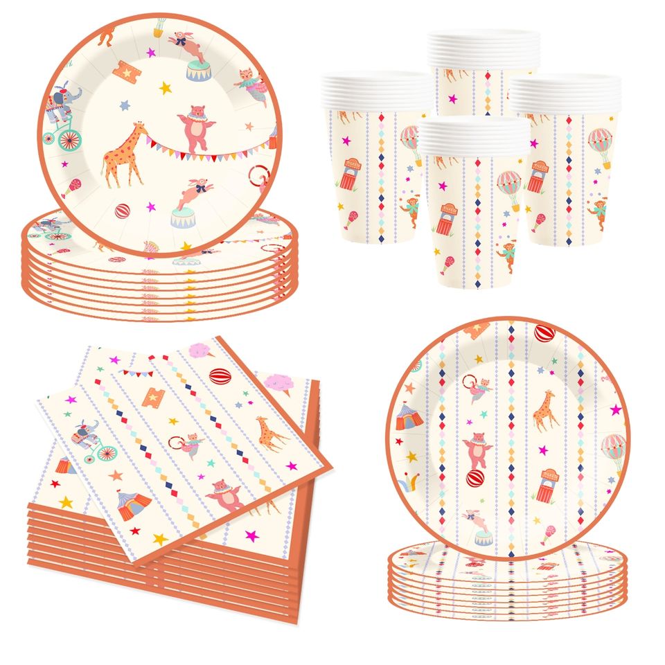 DAMAI 2025 Nuevos Estilos, Juego de Vajilla para Fiesta de Cumpleaños con Temática de Circo, Incluye Platos y Servilletas Desechables de Papel para Fiestas Infantiles