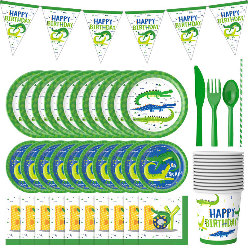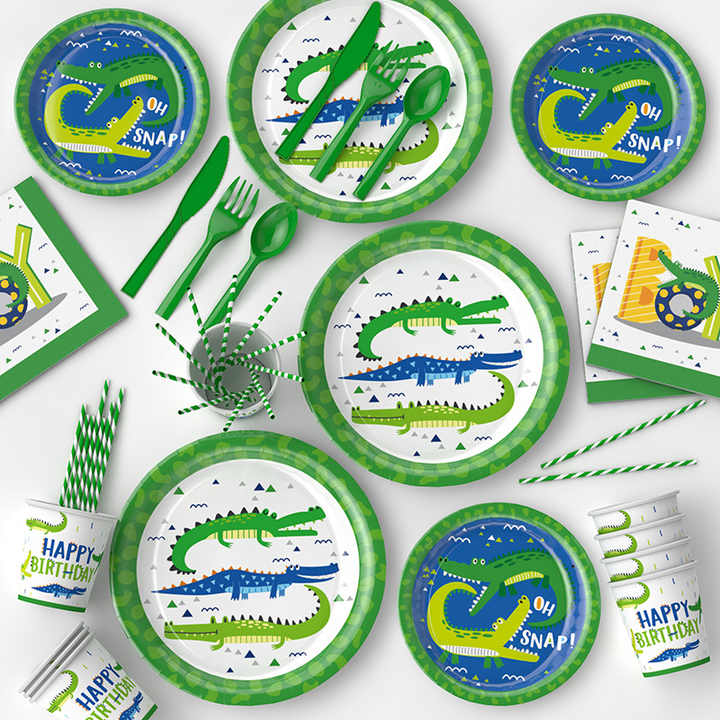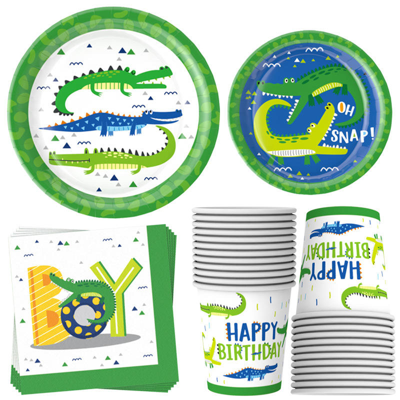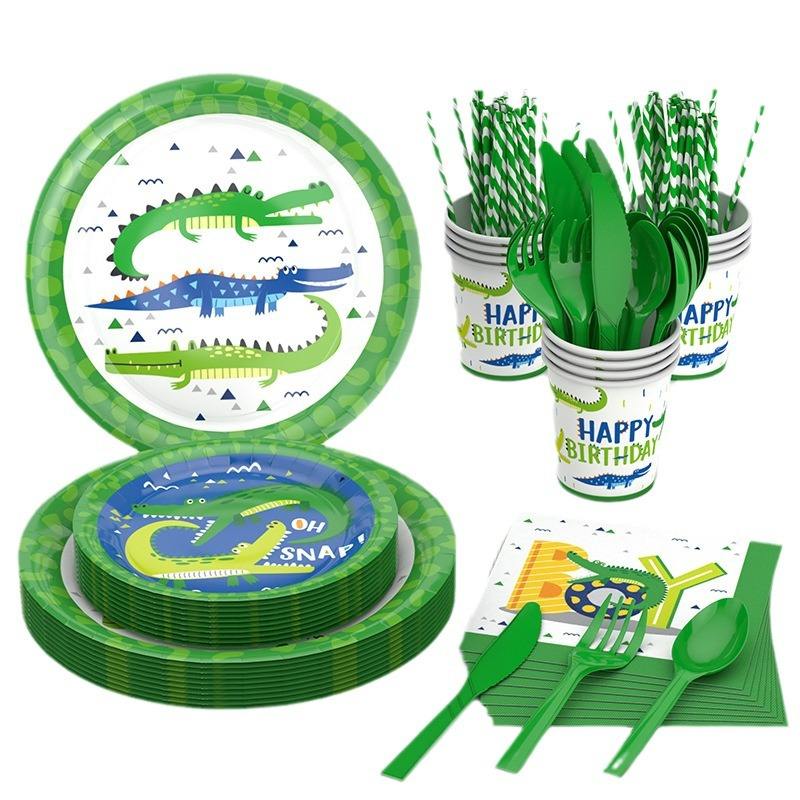 DAMAI - Juego de Platos Desechables de Cocodrilo para 24 Personas, Platos, Vasos y Servilletas de Papel para Fiestas Infantiles de Cumpleaños