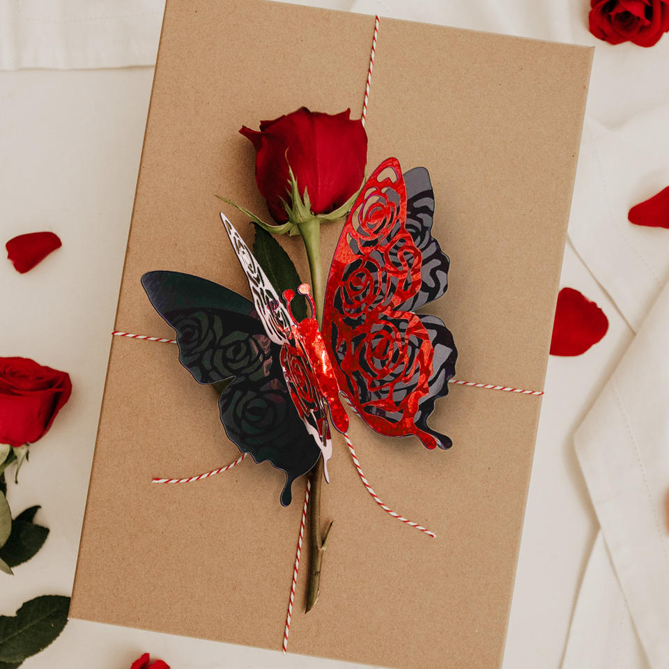 DAMAI Pegatinas Decorativas de Pared 3D de Doble Capa con Forma de Mariposa para el Día de San Valentín, Doradas Brillantes, 6 PIEZAS/SET, Pegatinas Decorativas de Mariposa