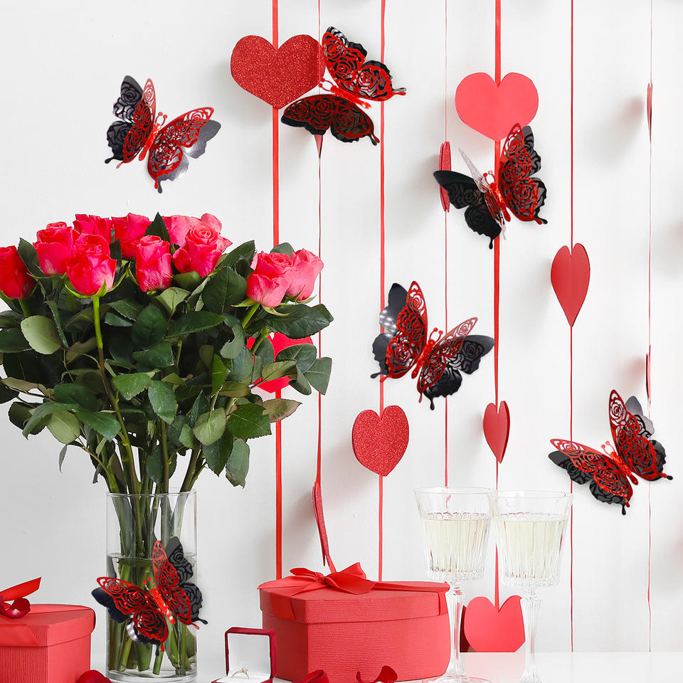 DAMAI Adhesivos de Pared de Mariposas 3D de Doble Capa, Decoraciones de San Valentín, Mariposas Doradas Brillantes para Decoración de Paredes de Fiestas Románticas
