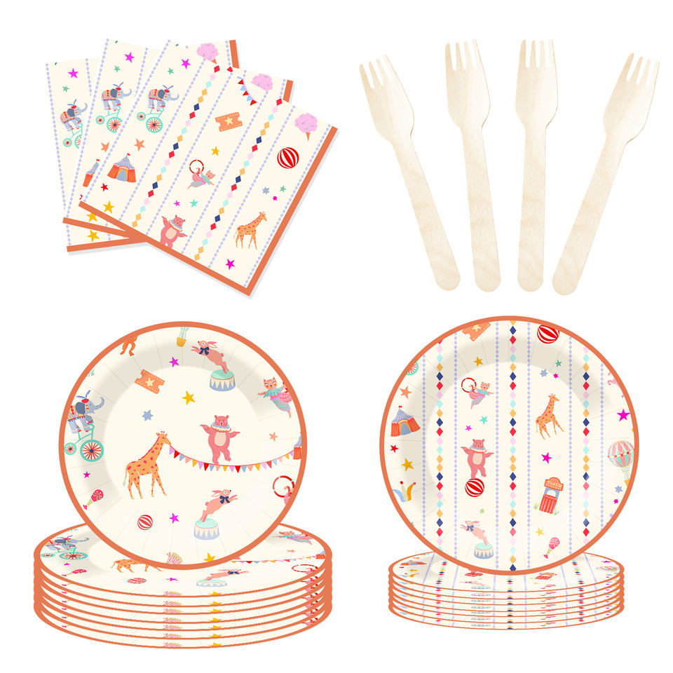DAMAI - Juego de Vajilla Desechable con Diseño de Animales, Platos Redondos de Papel para Postre y Cena, Servilletas y Vasos, Artículos para Fiestas Infantiles