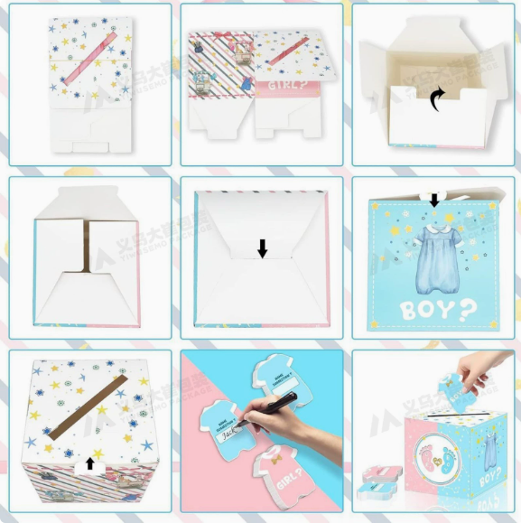 Cajas de Regalo para Decoración de Baby Shower DAMAI, Artículos para Fiestas de Revelación de Género, Caja de Papel Roja y Azul, Caja de Votación Plegable para Fiestas de Revelación