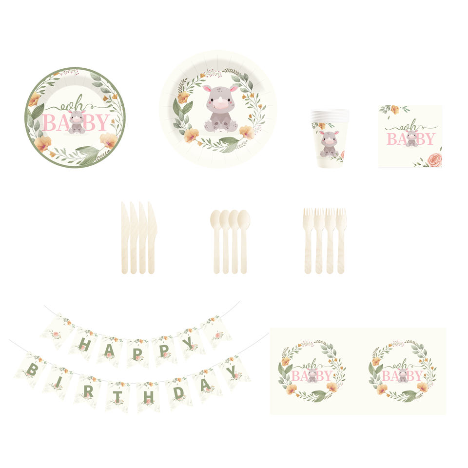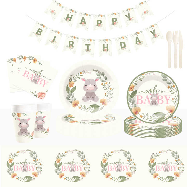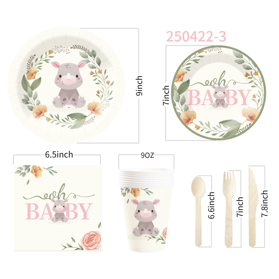 Juego de vajilla desechable DAMAI para fiesta de cumpleaños, platos de papel con diseño floral de conejitos para suministros de baby shower, para 8 personas.