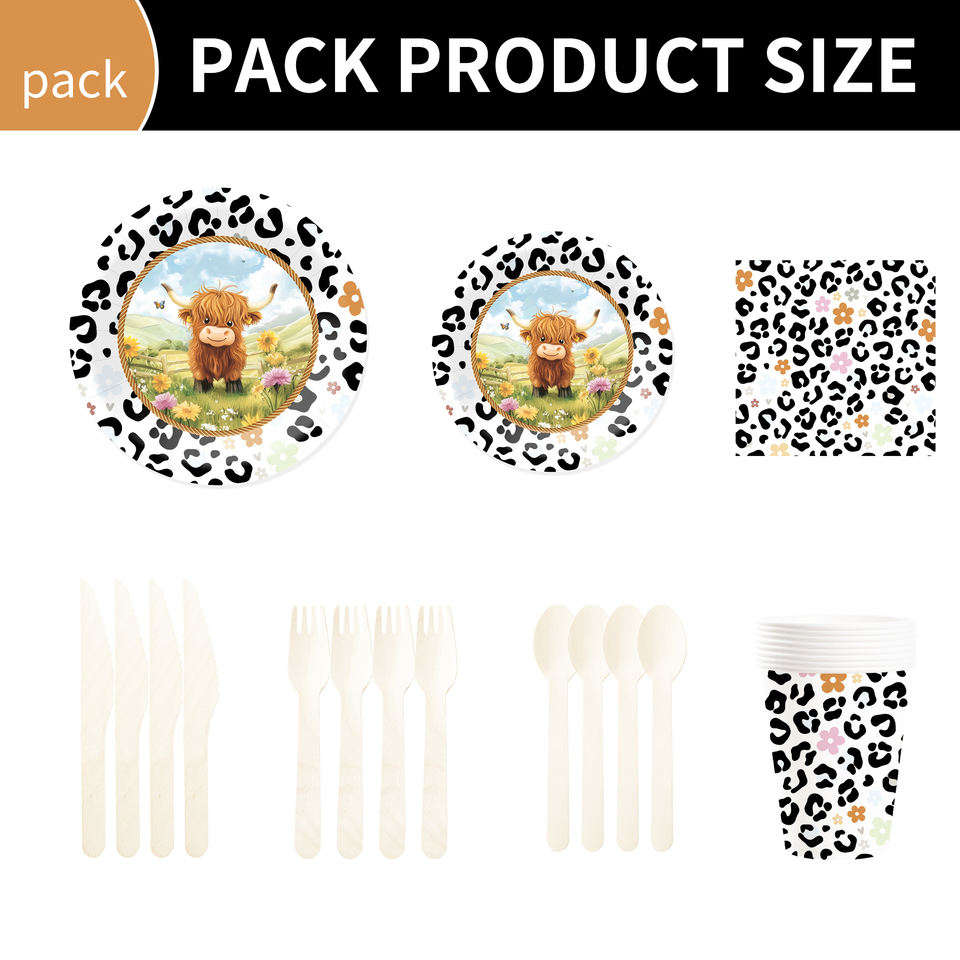 DAMAI - Juego de Decoración para Fiestas de Cumpleaños con Temática de Dibujos Animados, Platos de Papel con Diseño de Vaca con Manchas Negras, Mantel Desechable, Venta al por Mayor