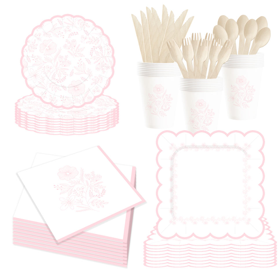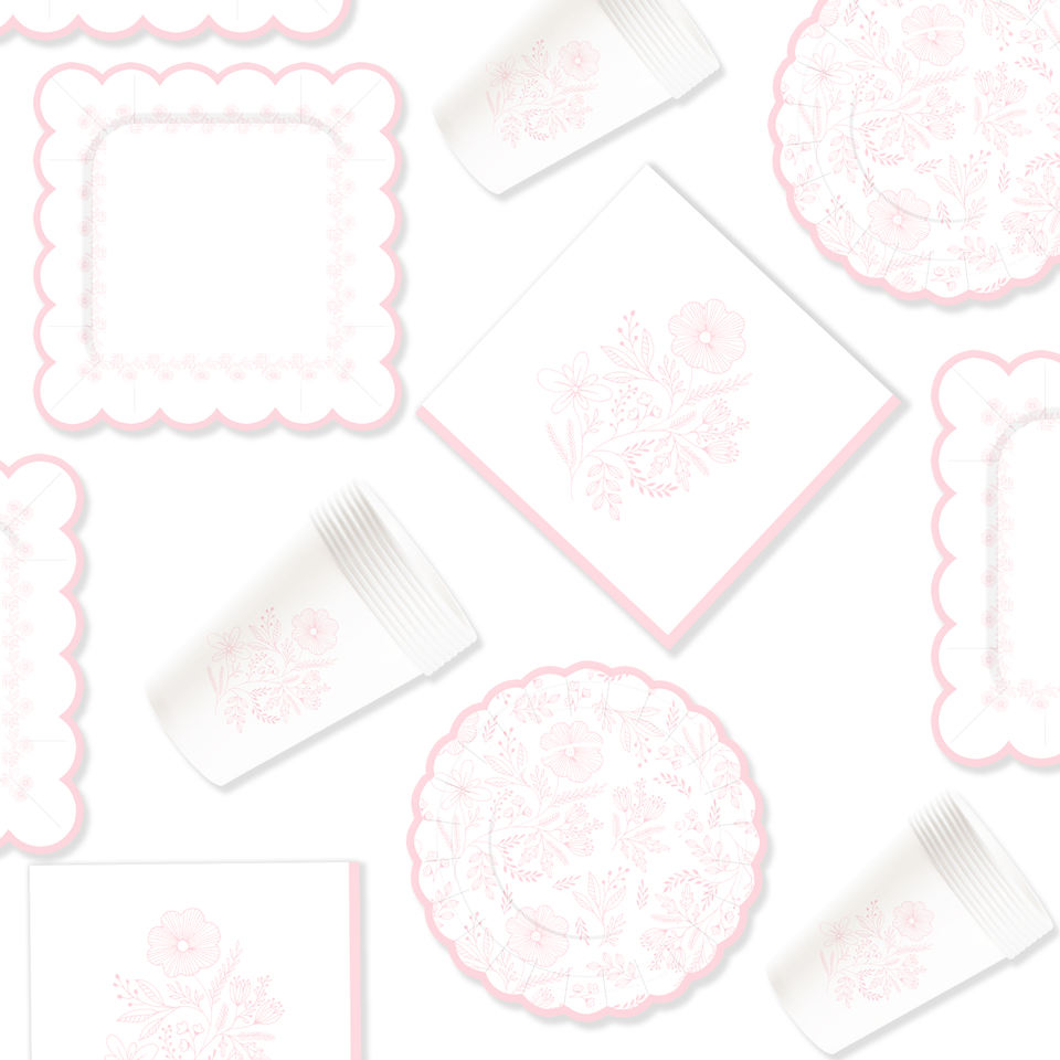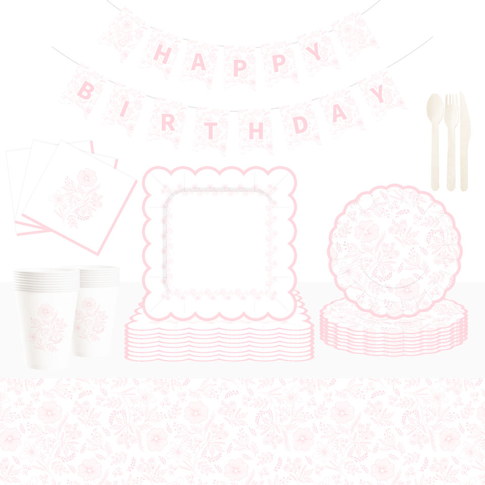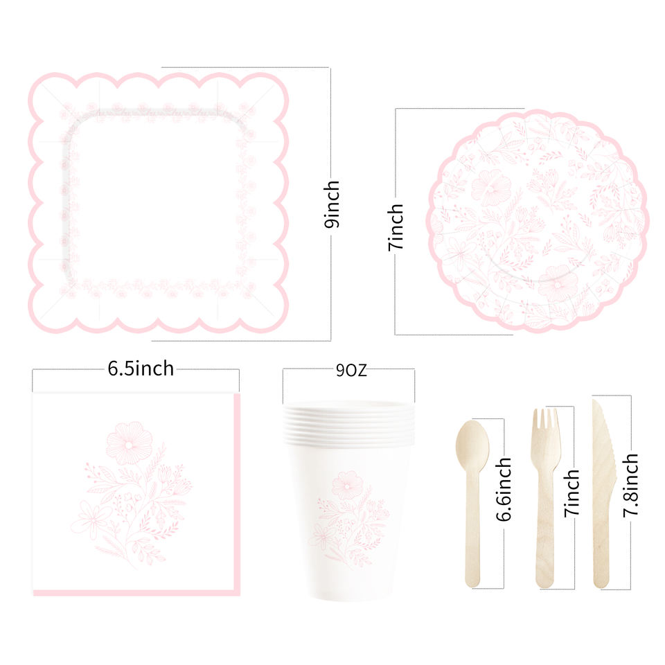 DAMAI - Juego de Decoración para Fiestas de Cumpleaños, Venta al por Mayor, Platos de Papel Románticos con Flores Rosas, Mantel, Vajilla Desechable para Fiestas
