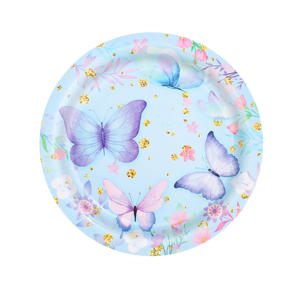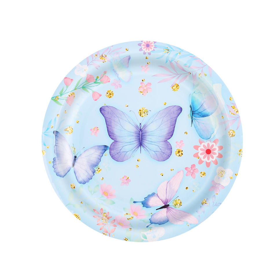 Juego de Vajilla DAMAI con Diseño de Mariposas Azules para Baby Shower o Fiesta de Cumpleaños de Niña, Incluye Platos, Vasos y Servilletas de Papel