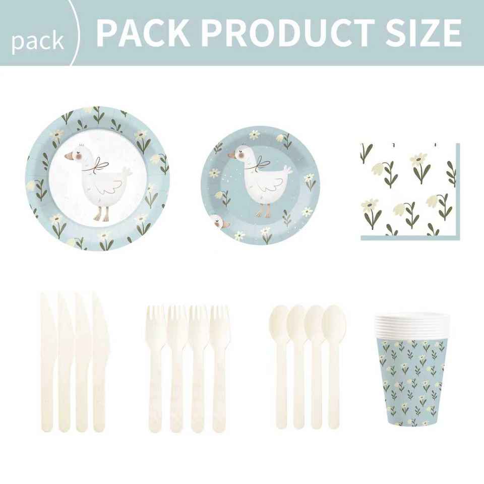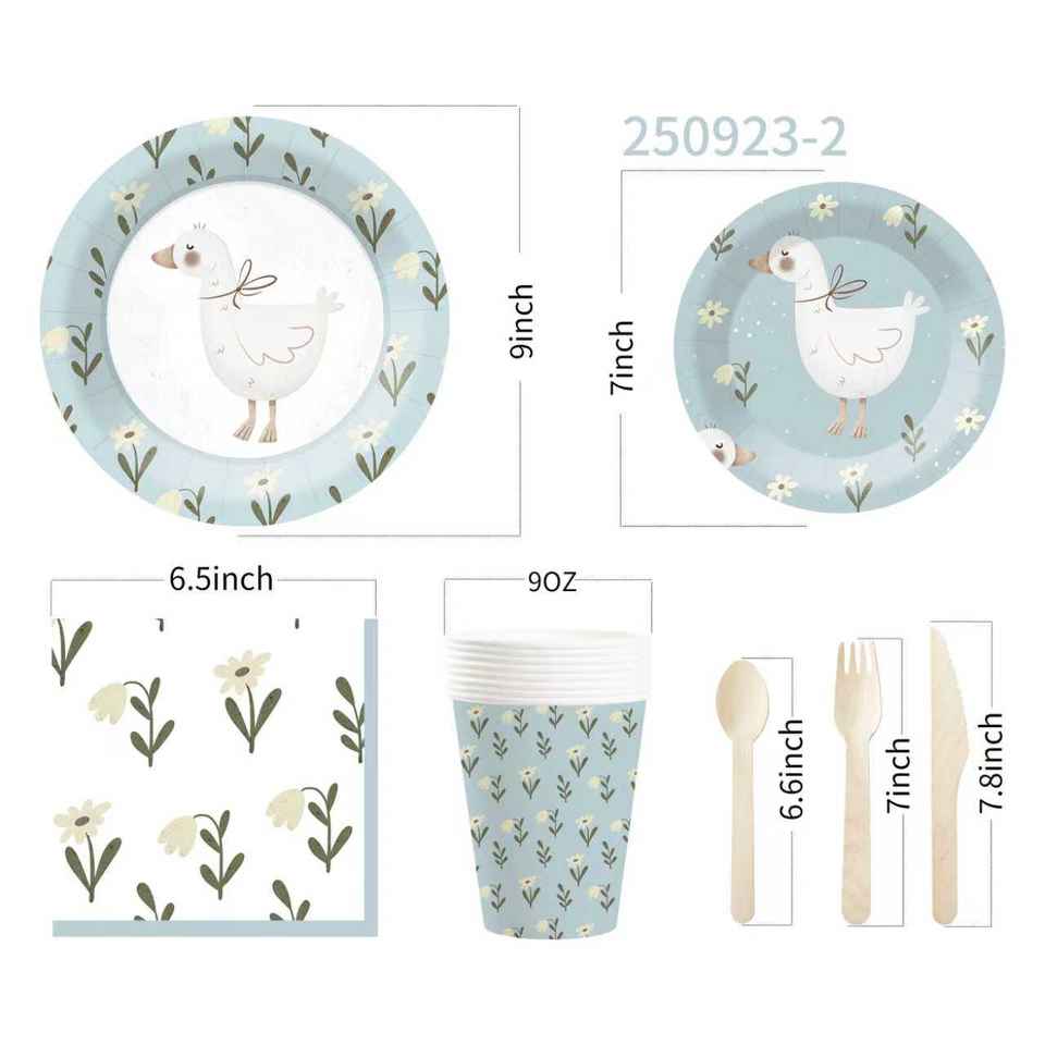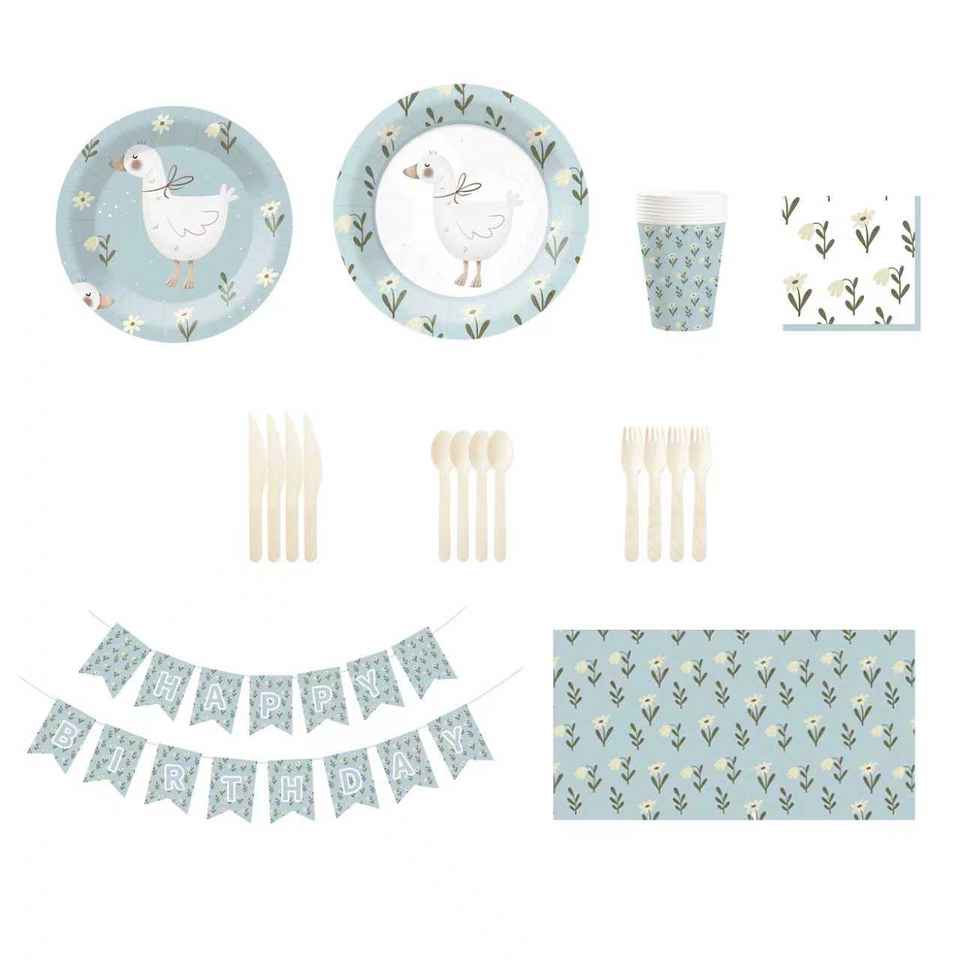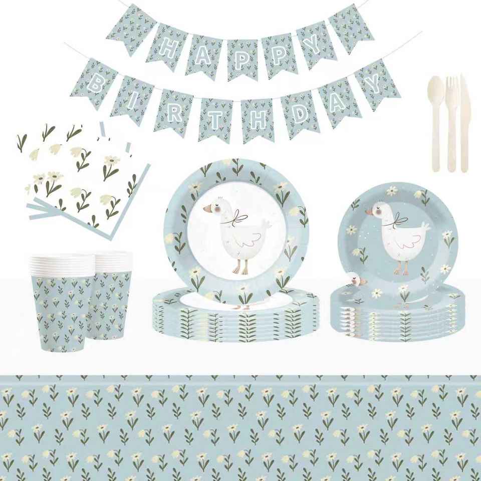 Juego de Vajilla Desechable DAMAI Blue Goose, Platos, Servilletas y Vasos de Papel Azules para Fiestas Infantiles
