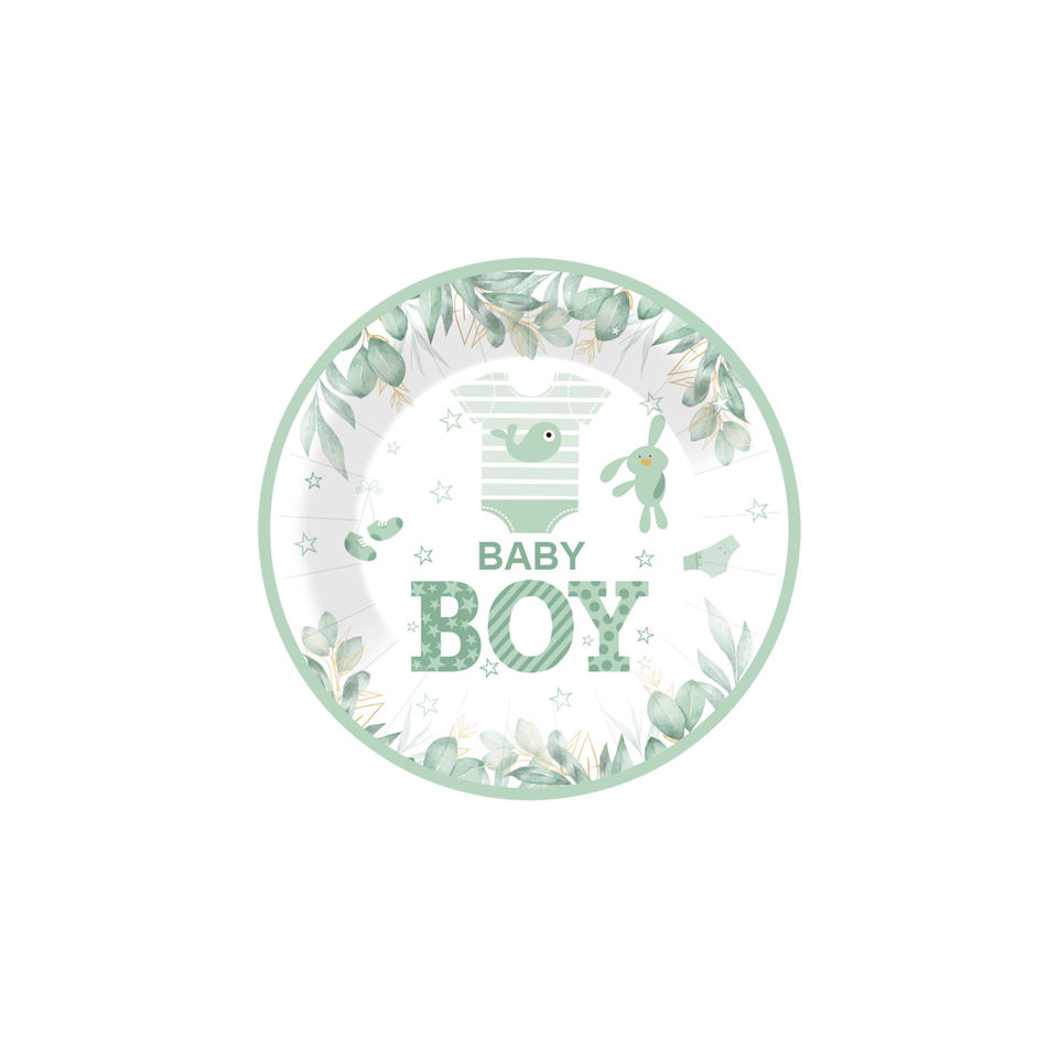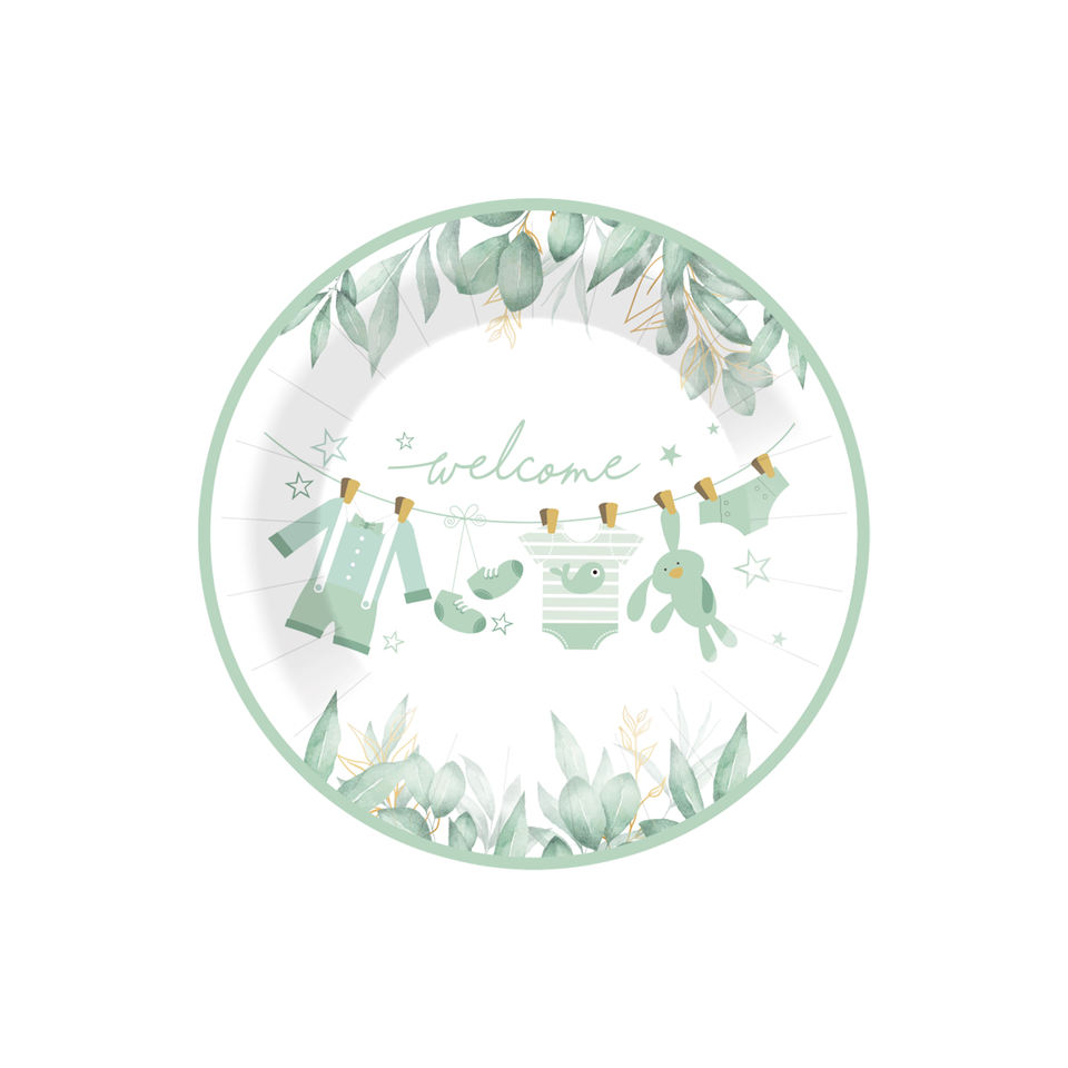 Juego de Platos de Papel para Baby Shower de Niño DAMAI, Decoraciones Verdes, Platos, Servilletas y Vasos Desechables