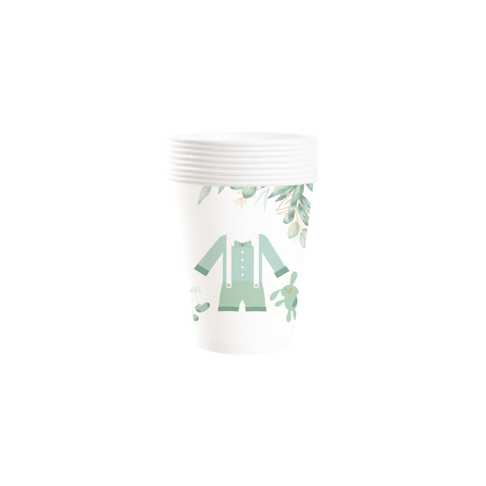 Palabras clave:Vajilla desechable para niño: platos, servilletas y vasos de papel verdes