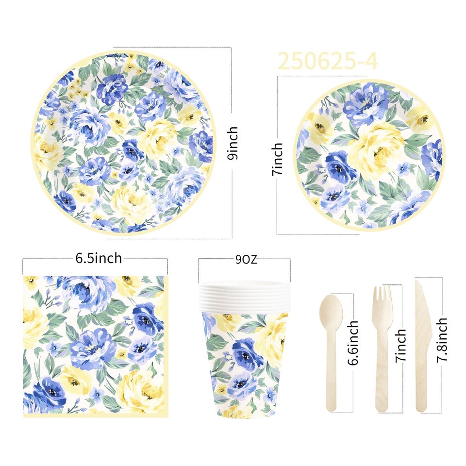 Decoraciones para Despedida de Soltera DAMAI, Juego de Platos y Servilletas con Flores Azules y Amarillas, Artículos para Fiestas de Cumpleaños y Baby Shower