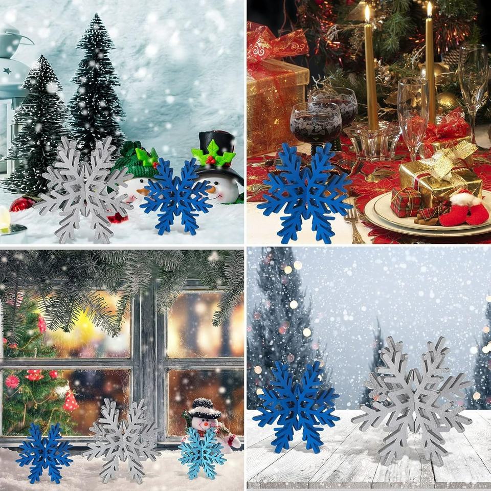Decoraciones Navideñas 3D de Copos de Nieve DAMAI, Centros de Mesa de Madera con Copos de Nieve Blancos para Decoración Navideña de Invierno
