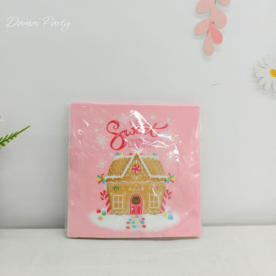 Decoraciones Navideñas DAMAI, Plato con Forma de Casita de Jengibre con Corona de Árbol, Vajilla Desechable, Platos, Vasos y Servilletas de Papel
