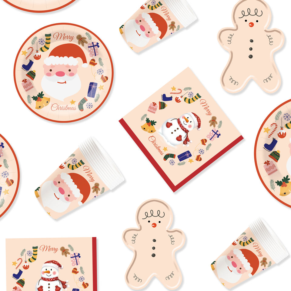 Platos de Papel Desechables con Diseño de Hombre de Jengibre Navideño DAMAI, Vasos y Servilletas para Decoraciones Navideñas al Aire Libre