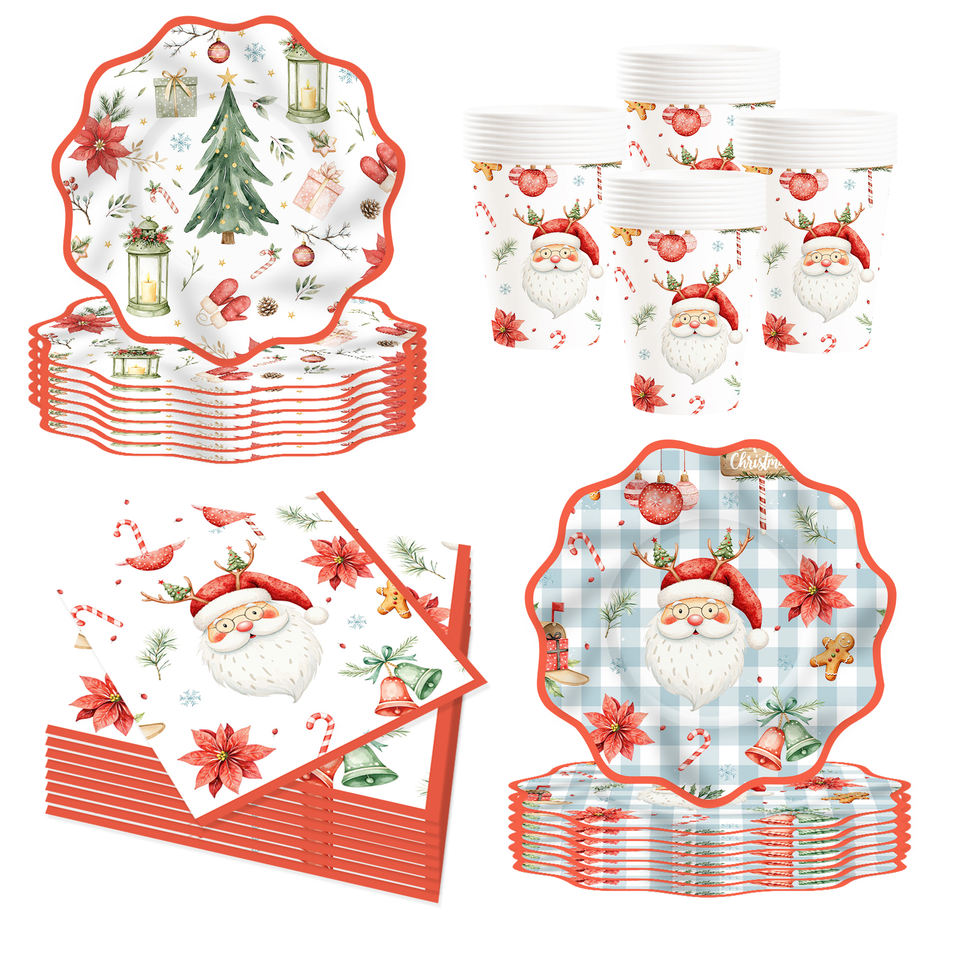 Juego de Vajilla para Fiesta de Navidad DAMAI, Juego de Platos, Vasos y Servilletas de Papel con Diseño de Santa Claus, Artículos para Fiestas