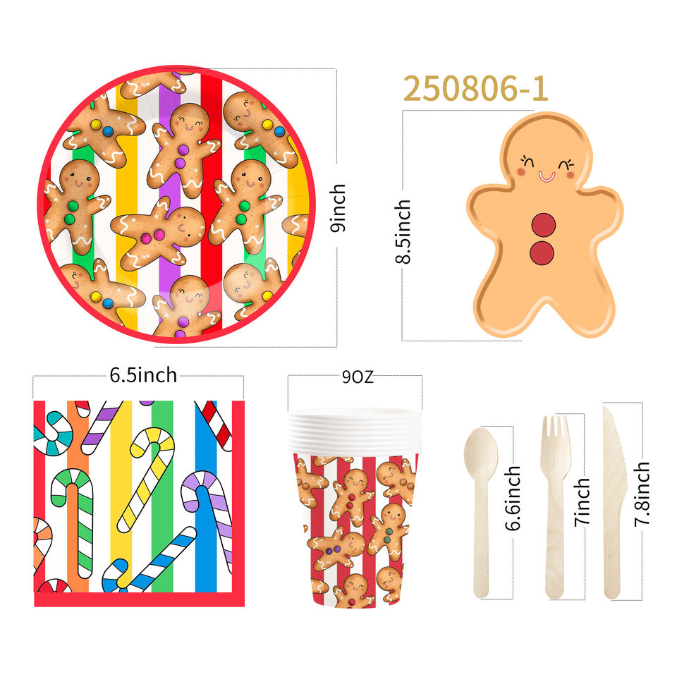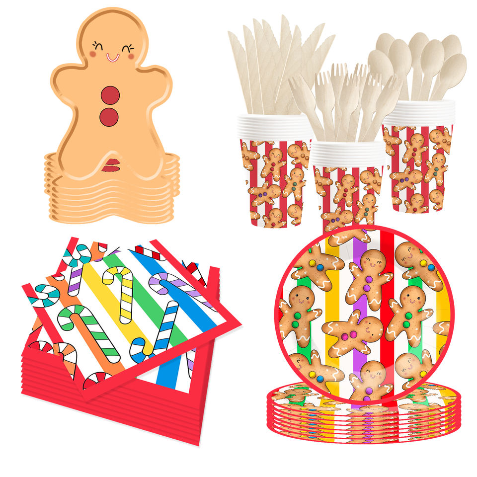 DAMAI - Juego de Platos, Vasos y Servilletas de Papel con Diseño de Hombre de Jengibre Sonriente para Fiestas Navideñas