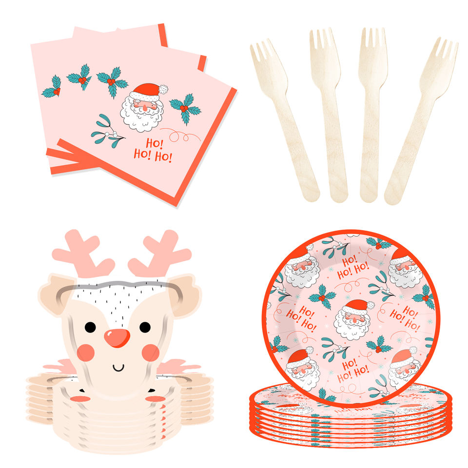 Juego de Vajilla Navideña Creativa DAMAI, Incluye Platos, Vasos y Servilletas de Papel con Forma de Ciervo para Decoración de Mesa de Fiesta Navideña