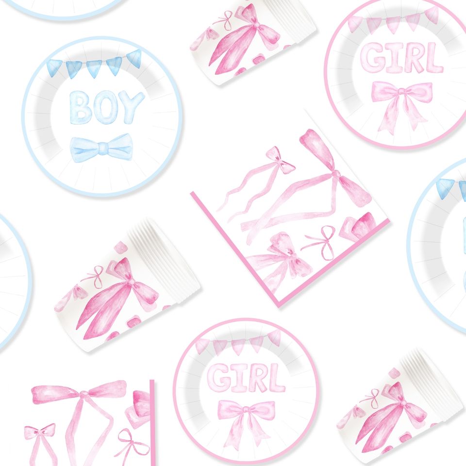 DAMAI - Vajilla Personalizada para Fiestas de Revelación de Género, Artículos para Baby Shower, Platos Desechables Impresos Personalizados, Juego de Vajilla de Papel para Fiestas