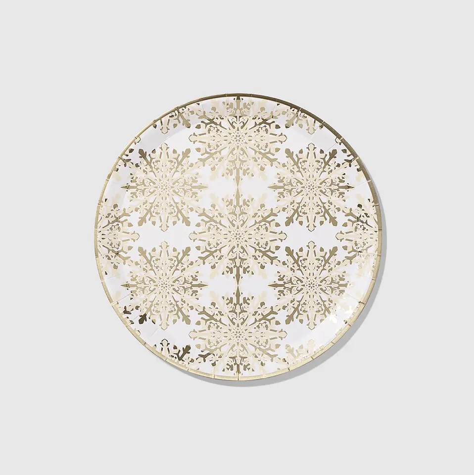 Nombre del producto:Juego de platos de fiesta con copos de nieve dorados