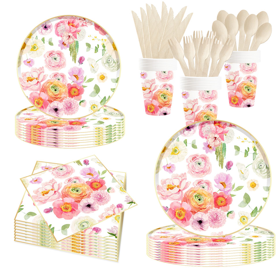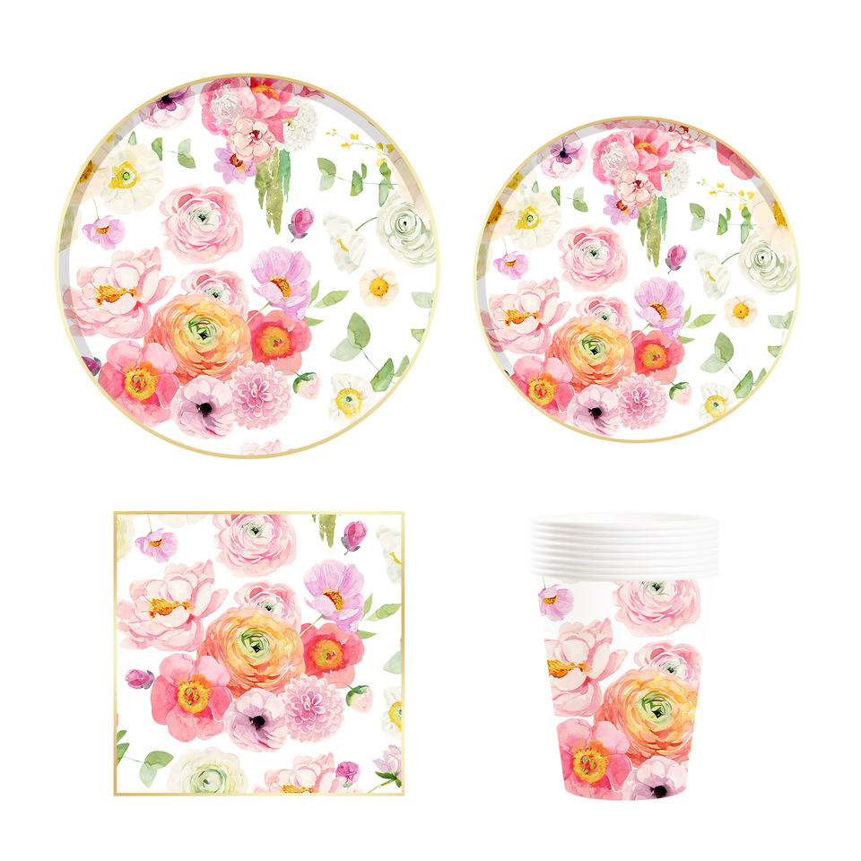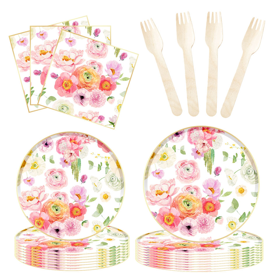 DAMAI - Vajilla de Papel Personalizada para Fiestas, Juego de Platos, Vasos y Servilletas de Papel con Tema Floral, Juego de Vajilla Desechable