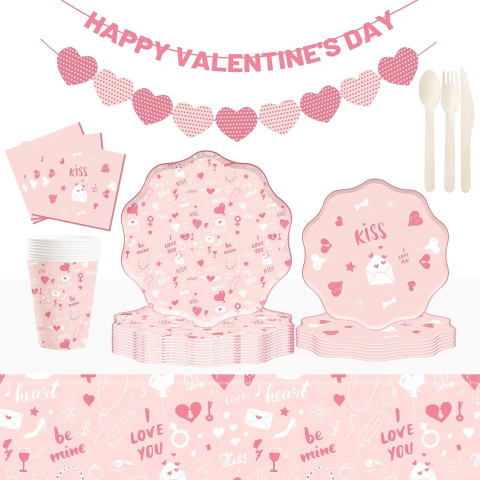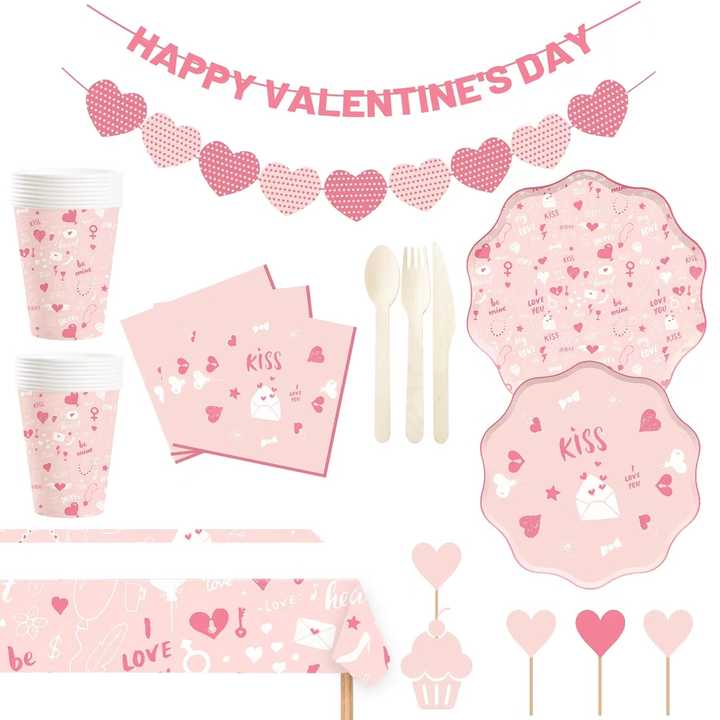 DAMAI - Juego de Vajilla Desechable de Papel con Diseño de Corazones, Color Rosa, para Fiestas de San Valentín