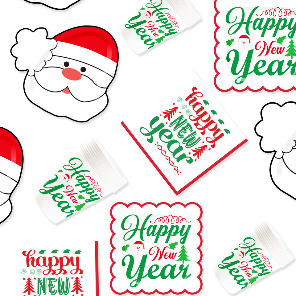 Juego de Vajilla Desechable Personalizado DAMAI para Fiesta de Navidad con Diseños de Gorro de Santa Claus, Platos, Vasos y Servilletas de Papel
