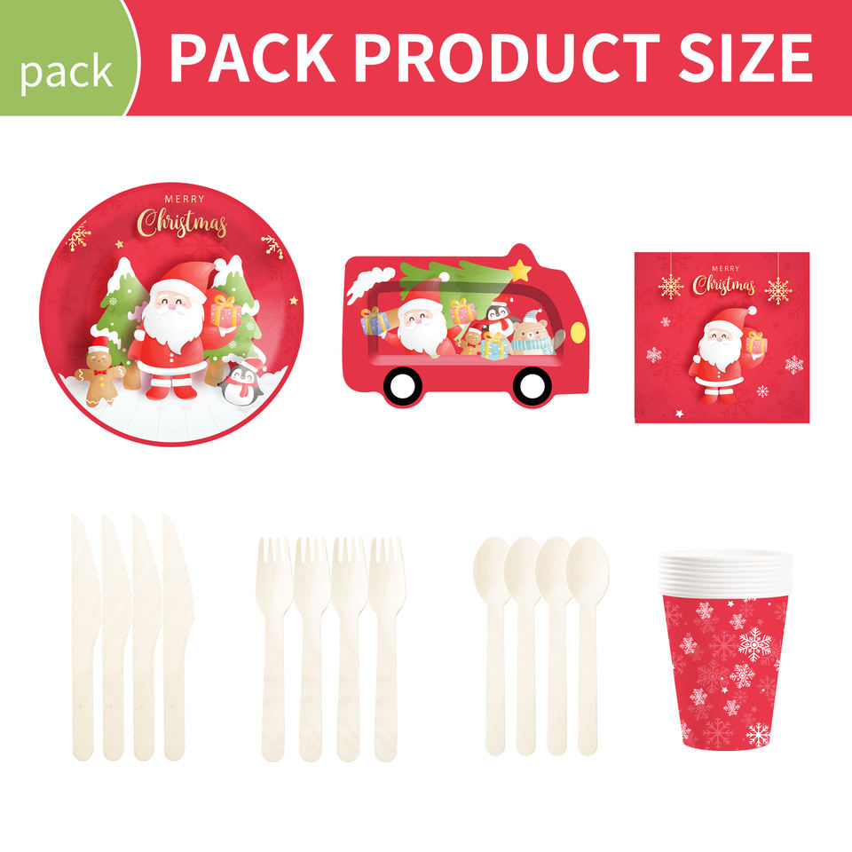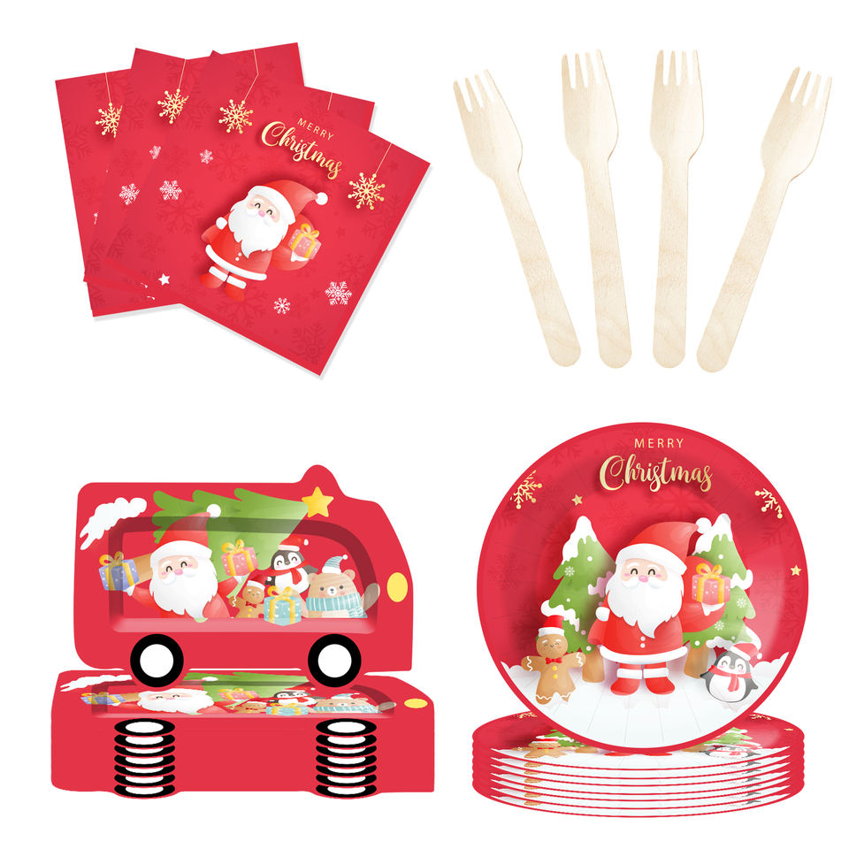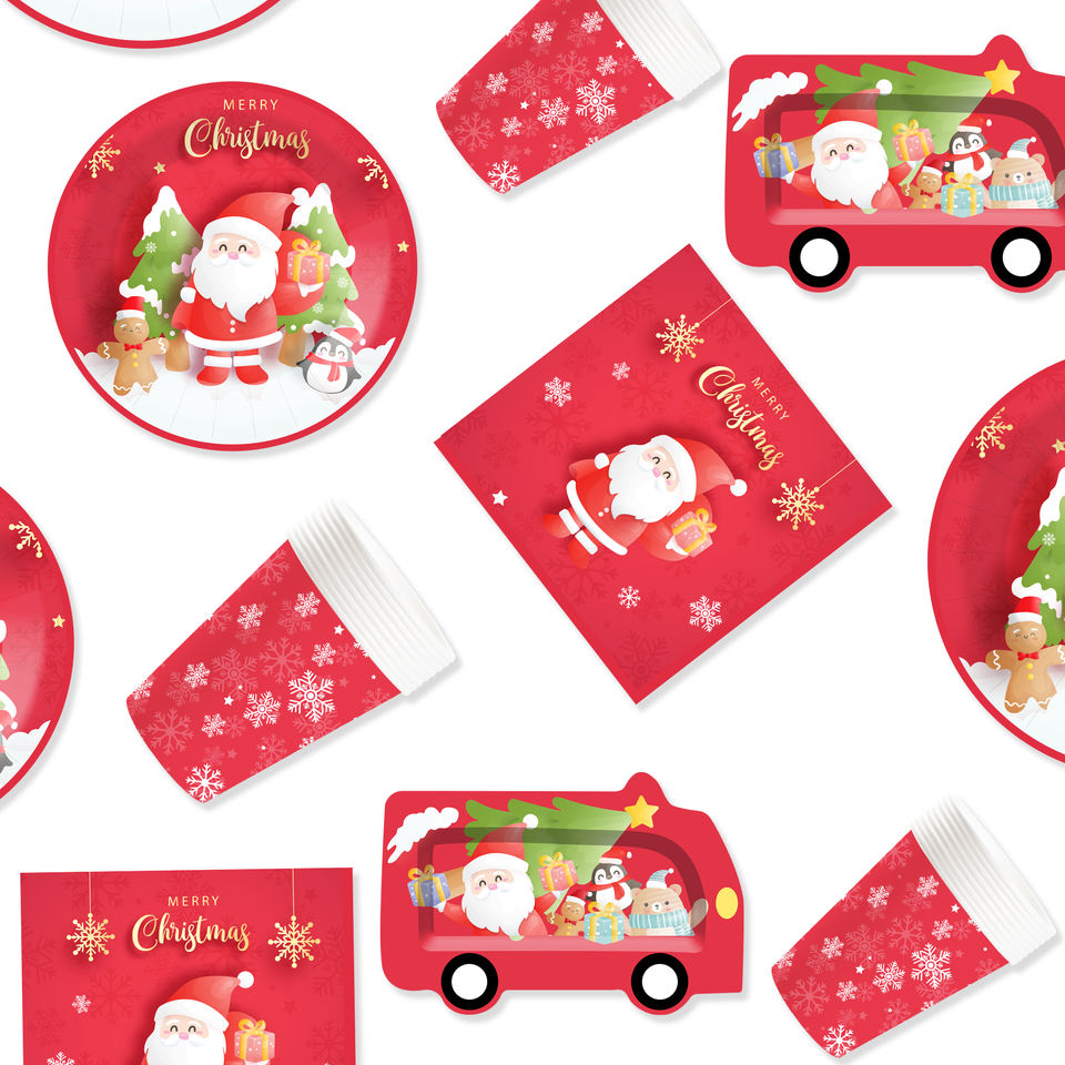 Juego de Vajilla Navideña Personalizado DAMAI, Incluye Platos de Papel con Forma de Auto, Vasos y Servilletas para Decoración de Mesa en Fiestas Navideñas