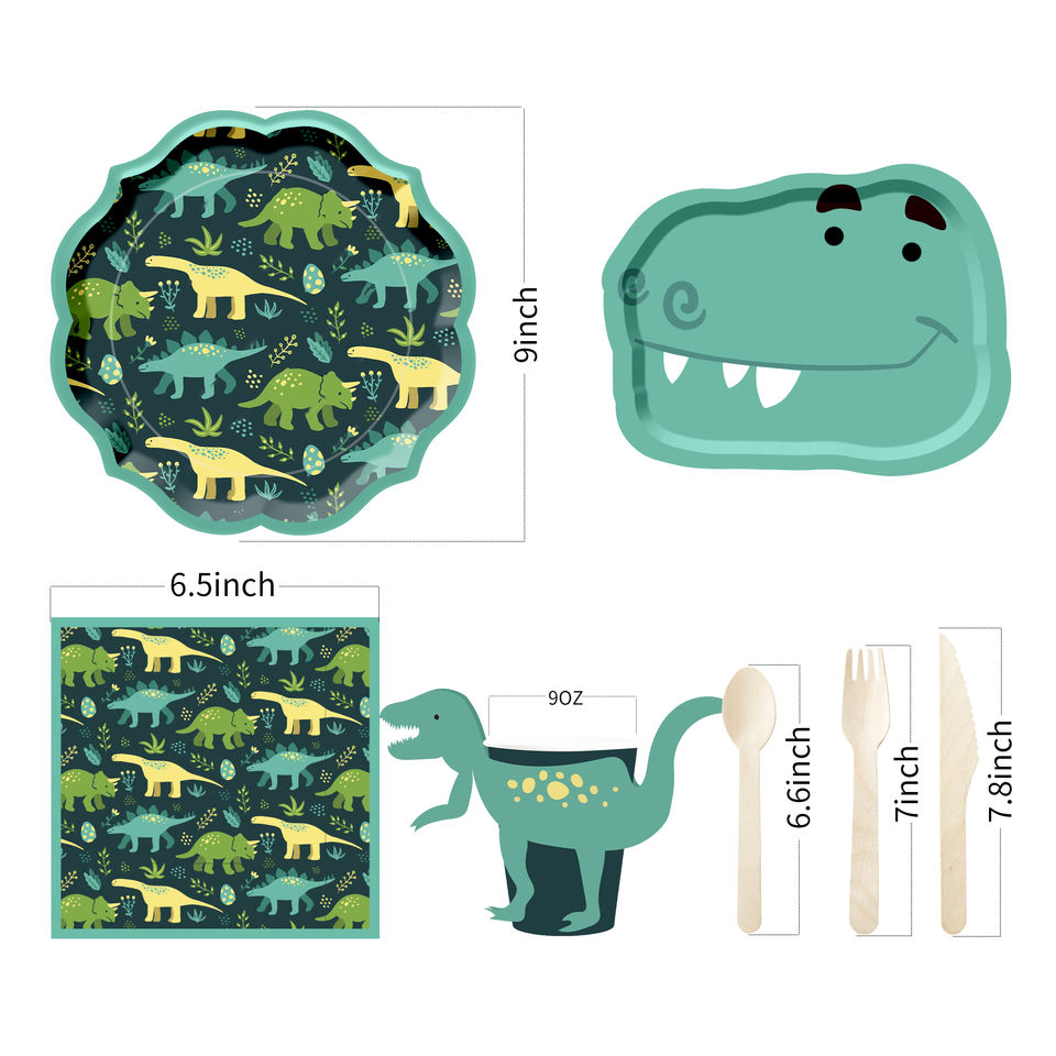 DAMAI - Juego de Vajilla Desechable con Temática de Dinosaurios, Nuevo y Popular, Personalizado, Artículos para Fiestas, Cumpleaños de Niños