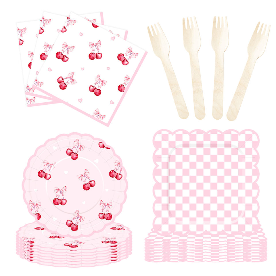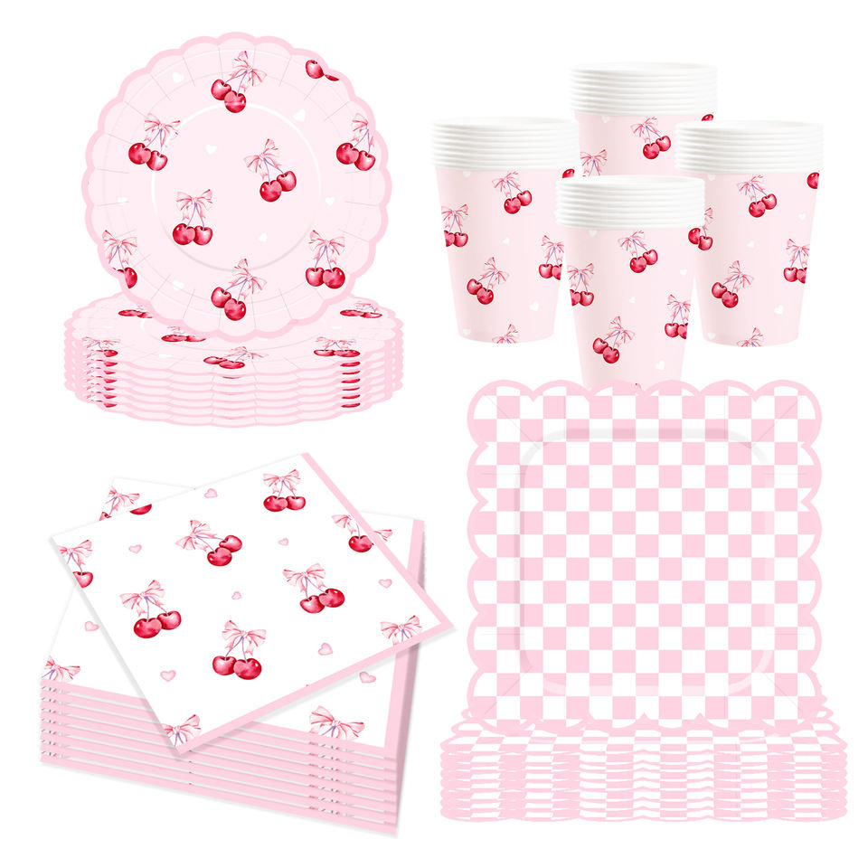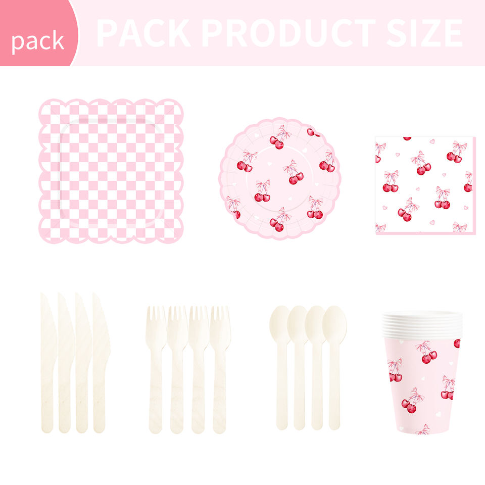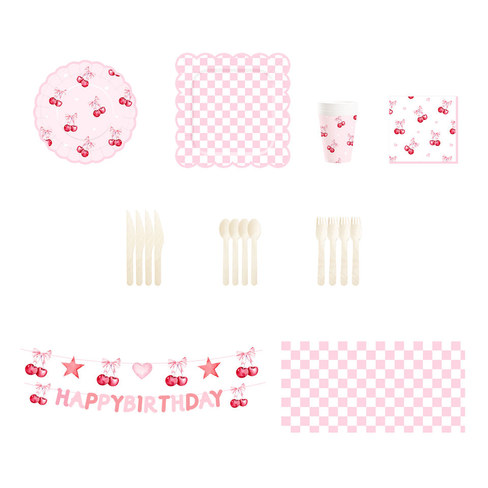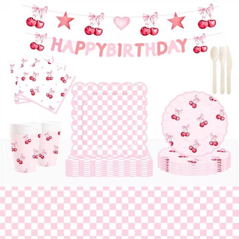 Juego de Vajilla de Papel con Tema de Frutas Personalizado DAMAI, Platos, Vasos y Servilletas de Papel Rosa Desechables con Diseño de Cerezas para Fiestas de Cumpleaños Infantiles