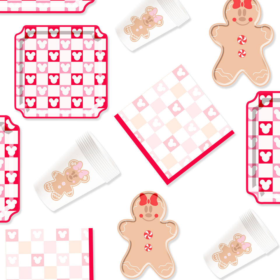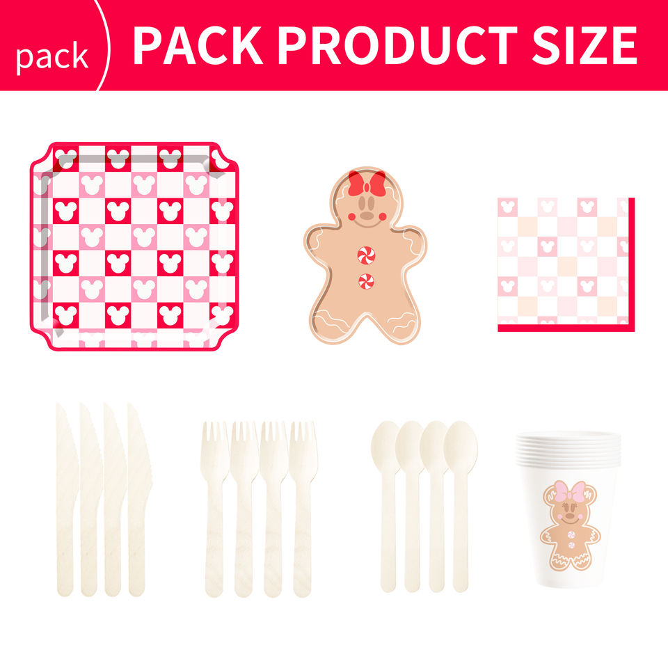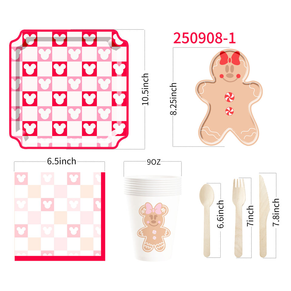 DAMAI Customized Gingerbread Man Christmas Party Tableware Set with Red Bowknot Patters Disposable Paper Plates Set