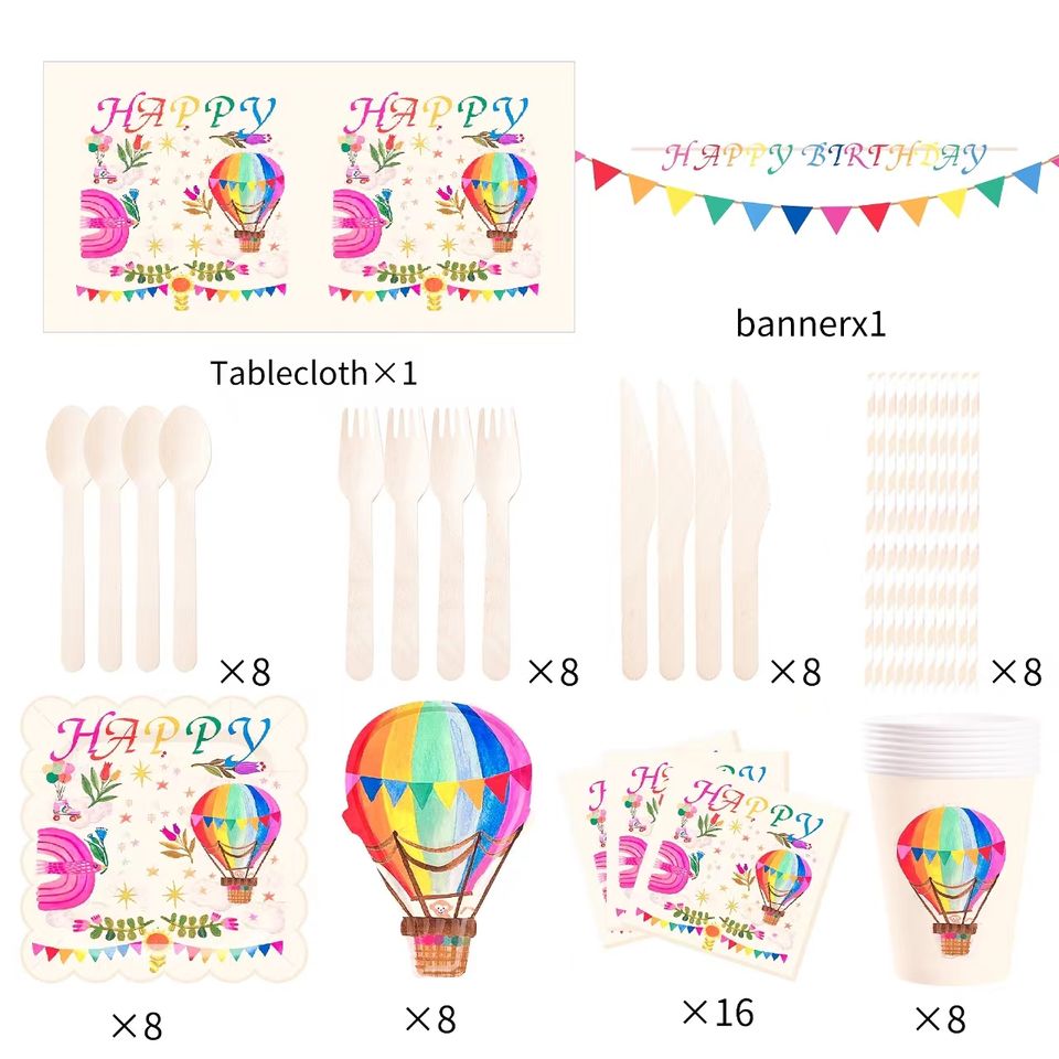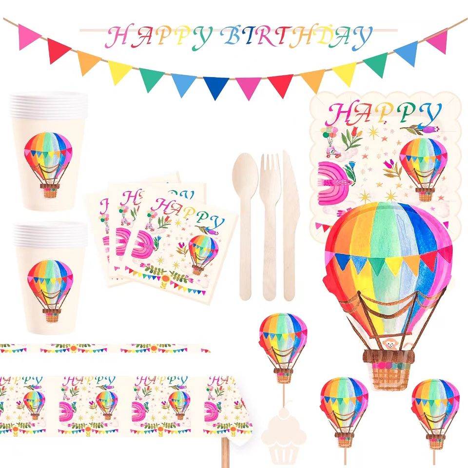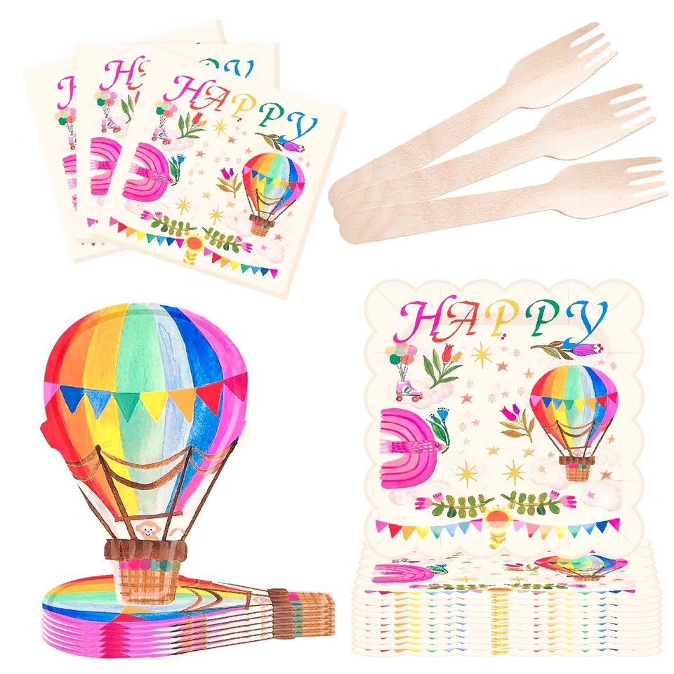 DAMAI - Juego de Vajilla Desechable de Papel para Fiesta de Cumpleaños con Diseño de Globo Aerostático, Platos para Cena de Cumpleaños, Artículos para Fiestas Infantiles