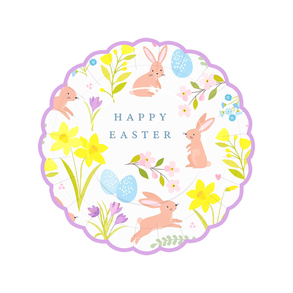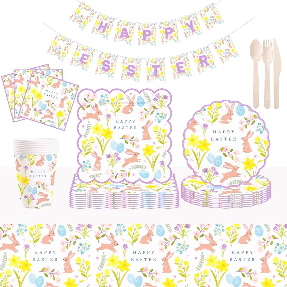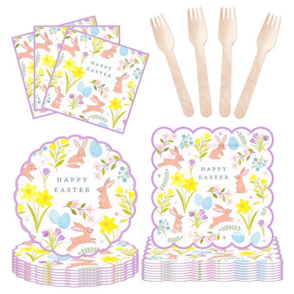 DAMAI - Juego de Platos y Vasos Desechables de Papel con Diseño de Conejo Estampado para Decoración de Fiesta de Pascua 2025