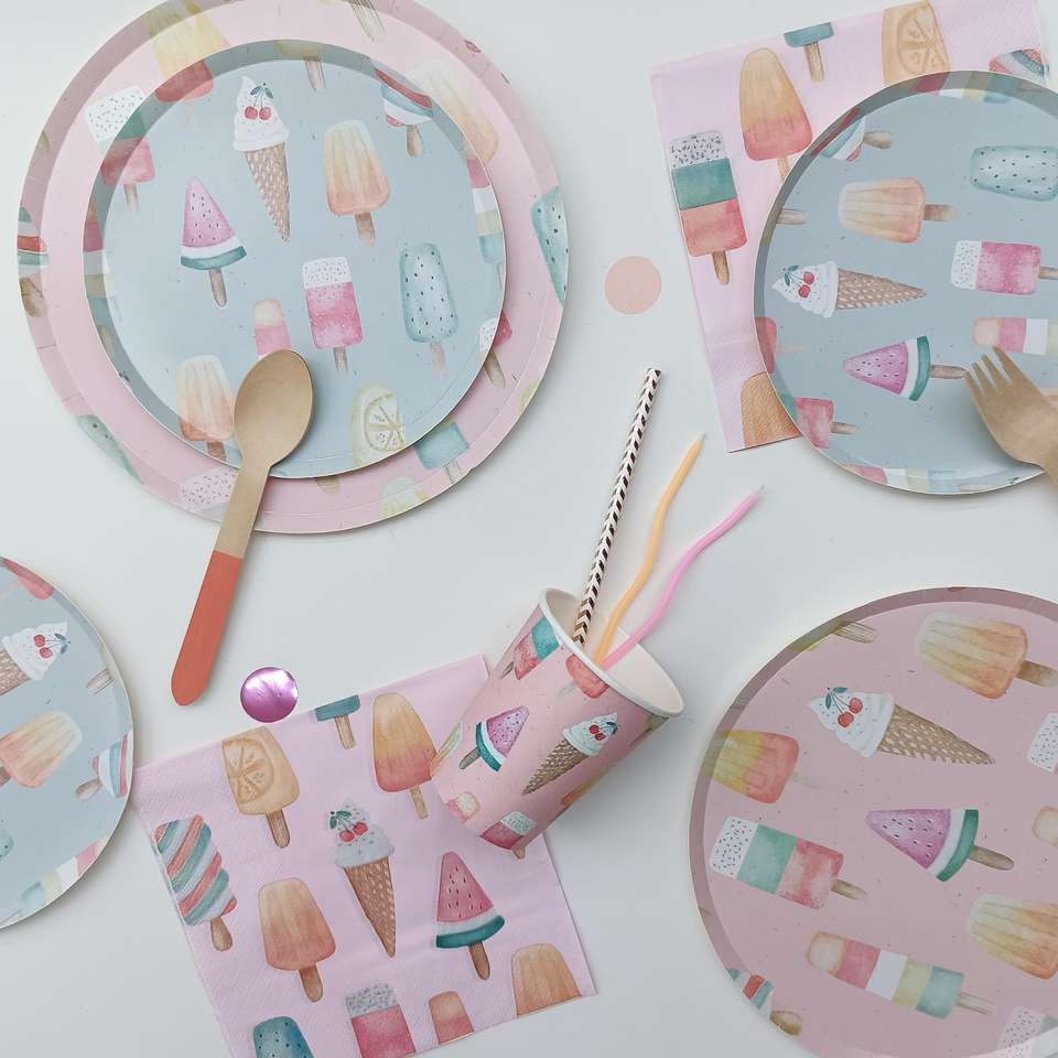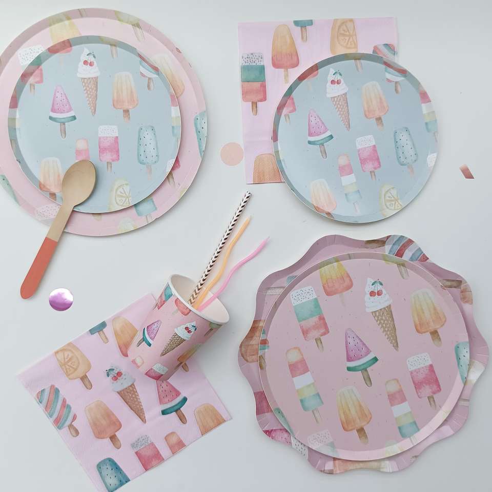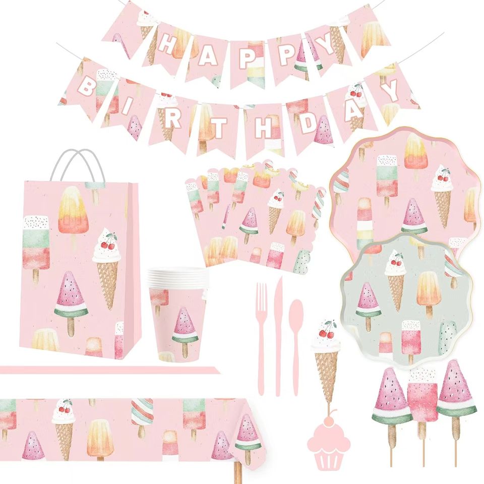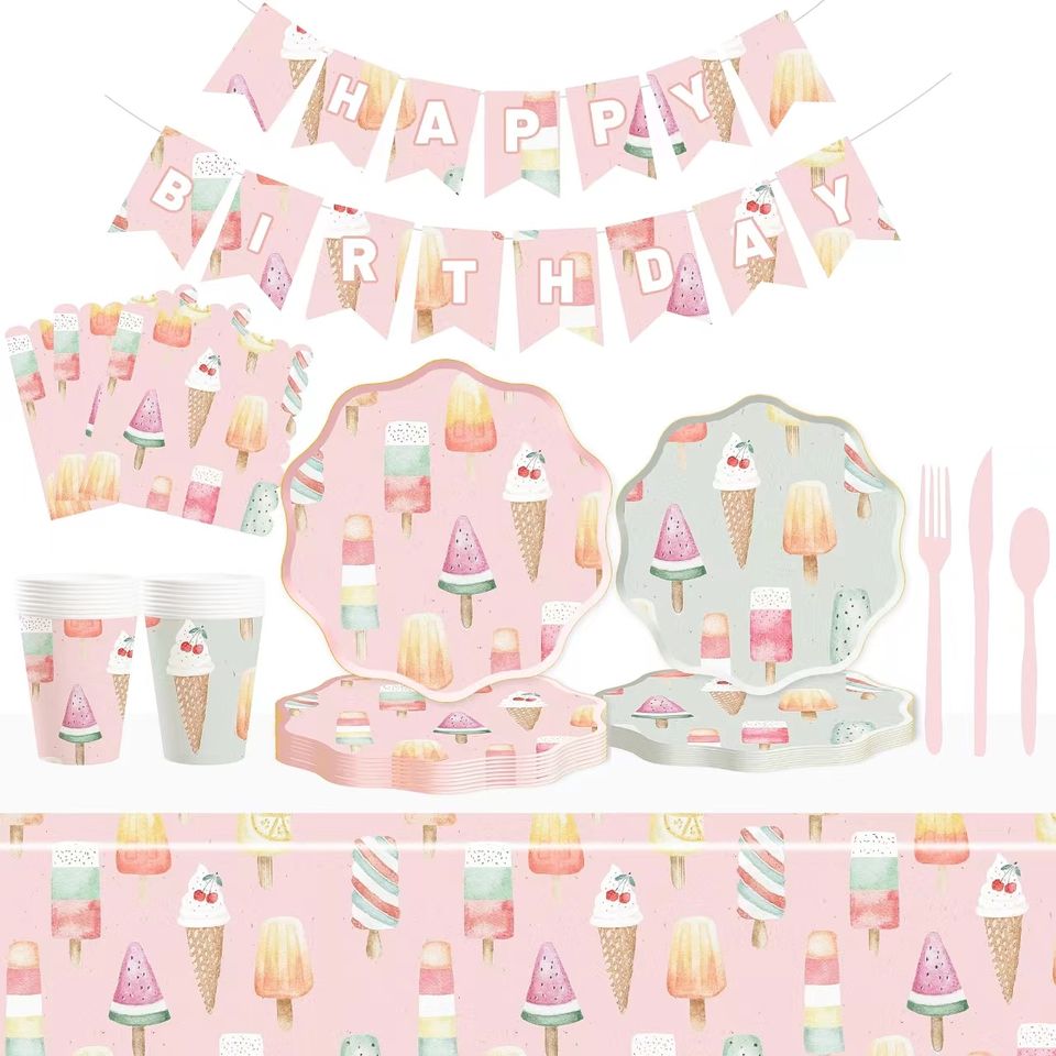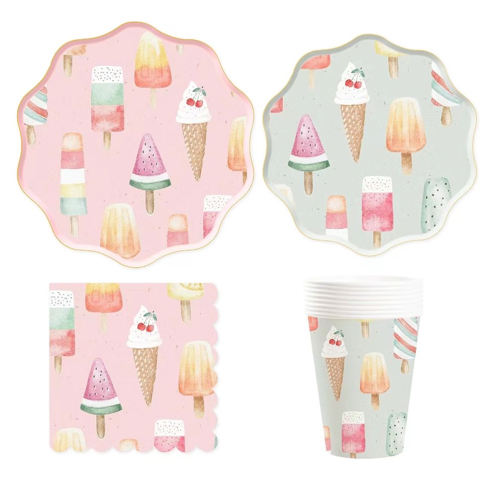 DAMAI - Juego de Platos de Papel Desechables con Diseño de Helado Rosa, Personalizados, Novedad en Venta, para Fiestas de Cumpleaños Infantiles de Verano