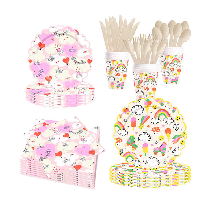 Platos de Papel Personalizados con Diseño de Arcoíris DAMAI, Artículos para Fiestas de Cumpleaños, Decoraciones para Baby Shower y Fiestas de Feliz Cumpleaños