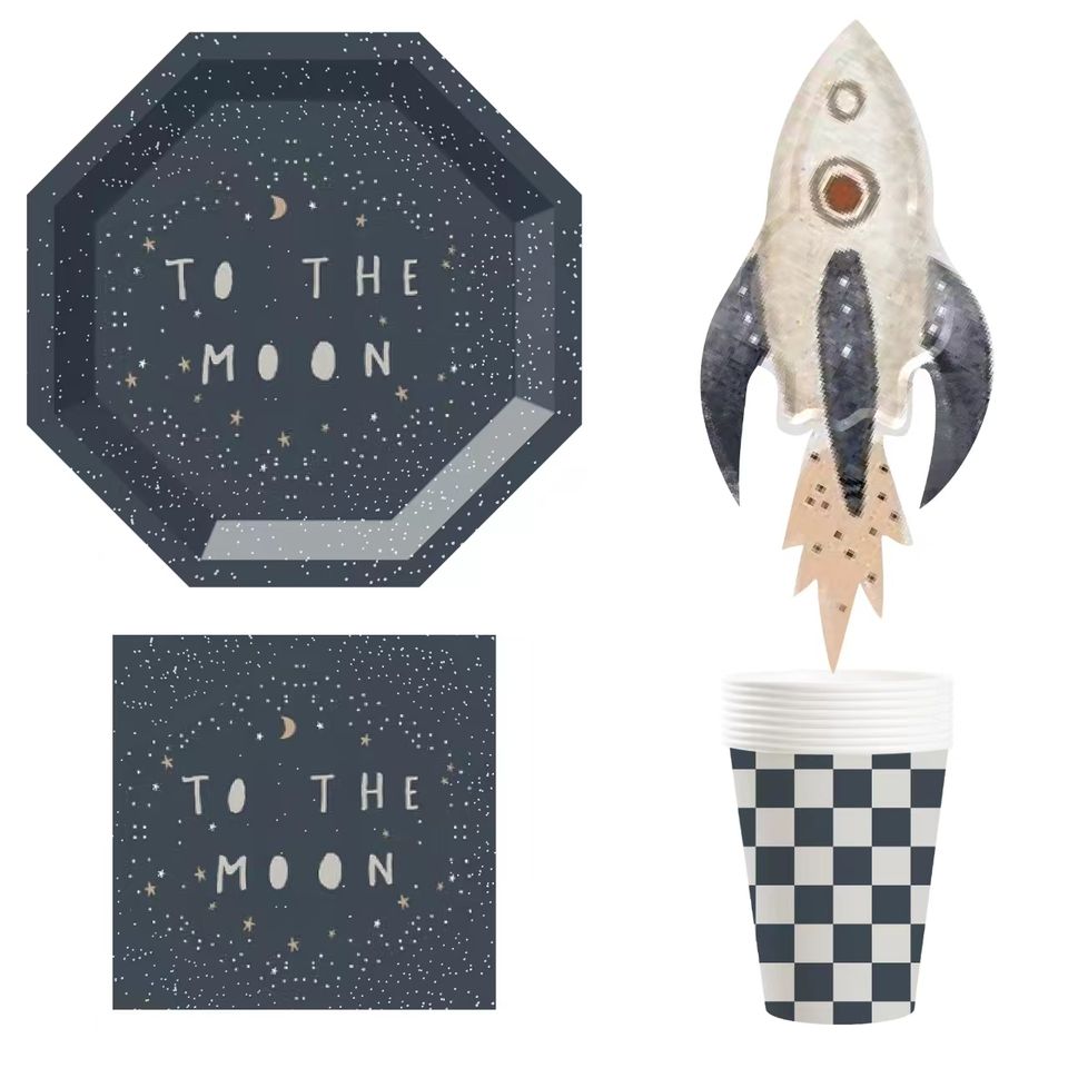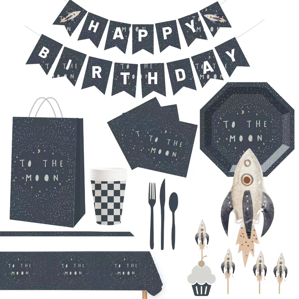 DAMAI - Juego de Platos de Papel con Forma de Cohete Personalizados para Fiestas de Cumpleaños, Tema de Astronauta, Vajilla Desechable para Niños